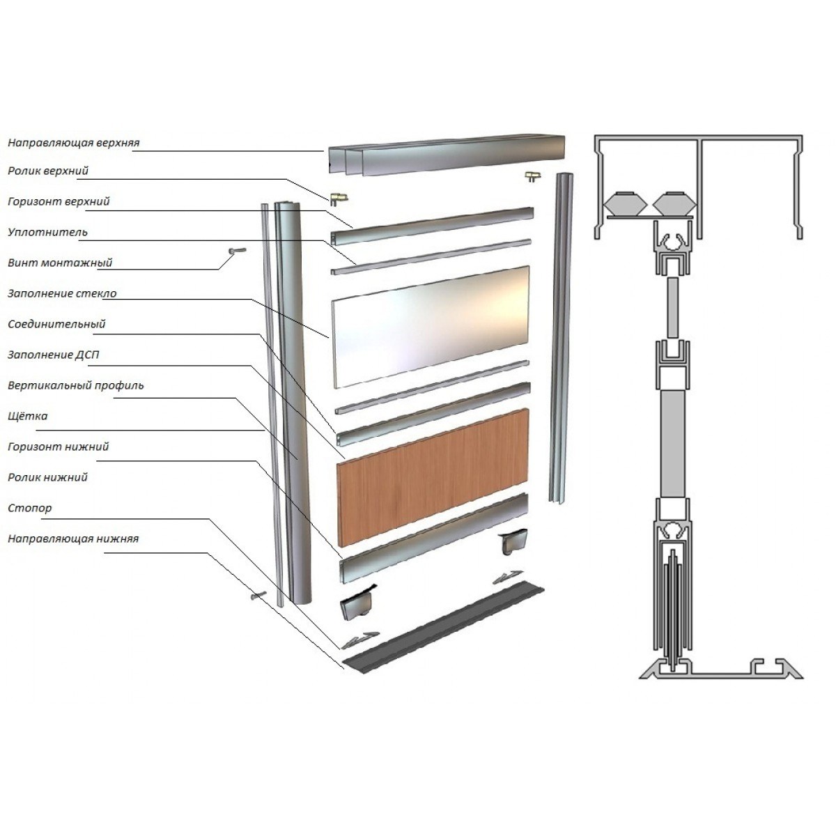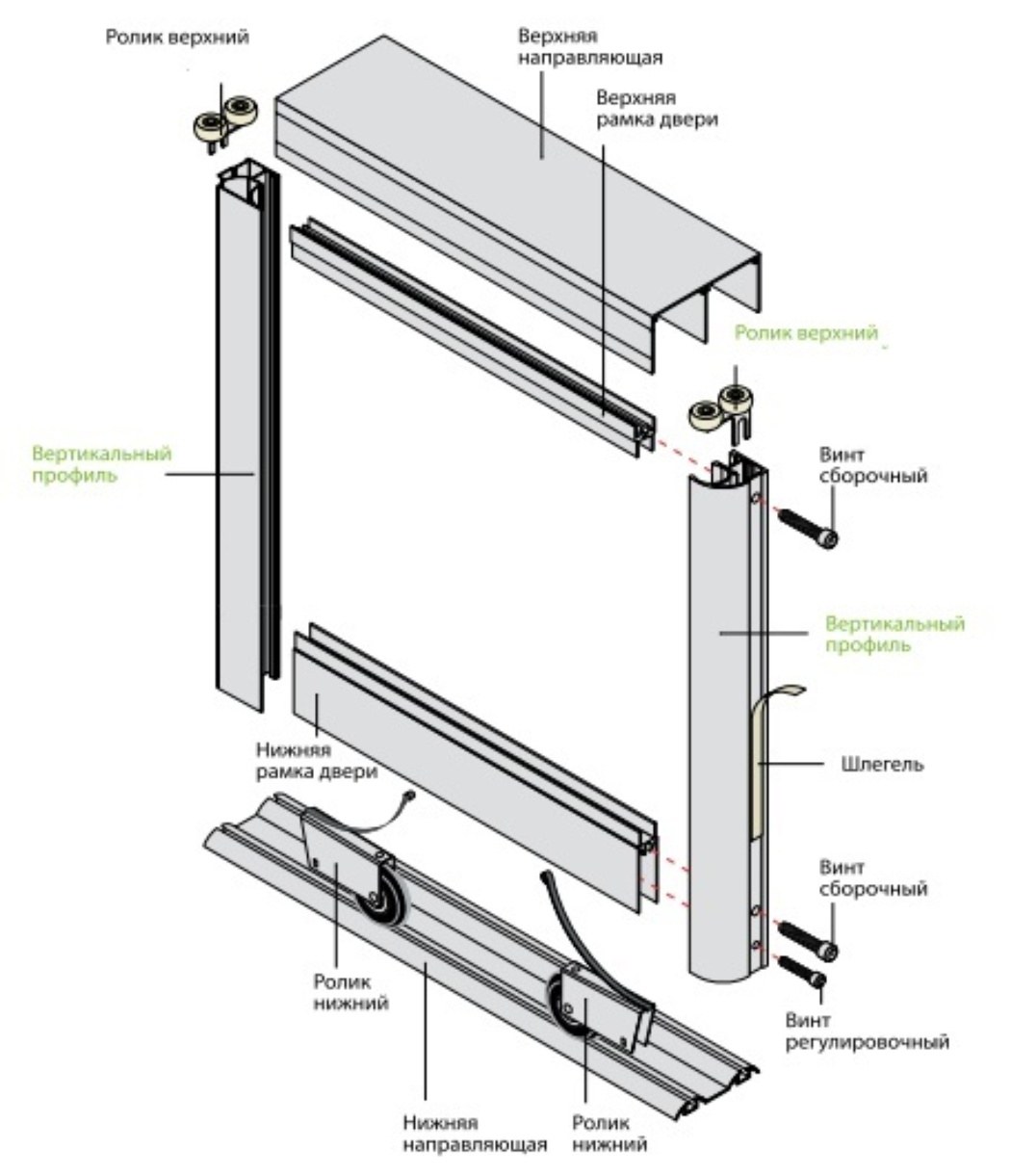 Схема сборки двери купе алюминиевая