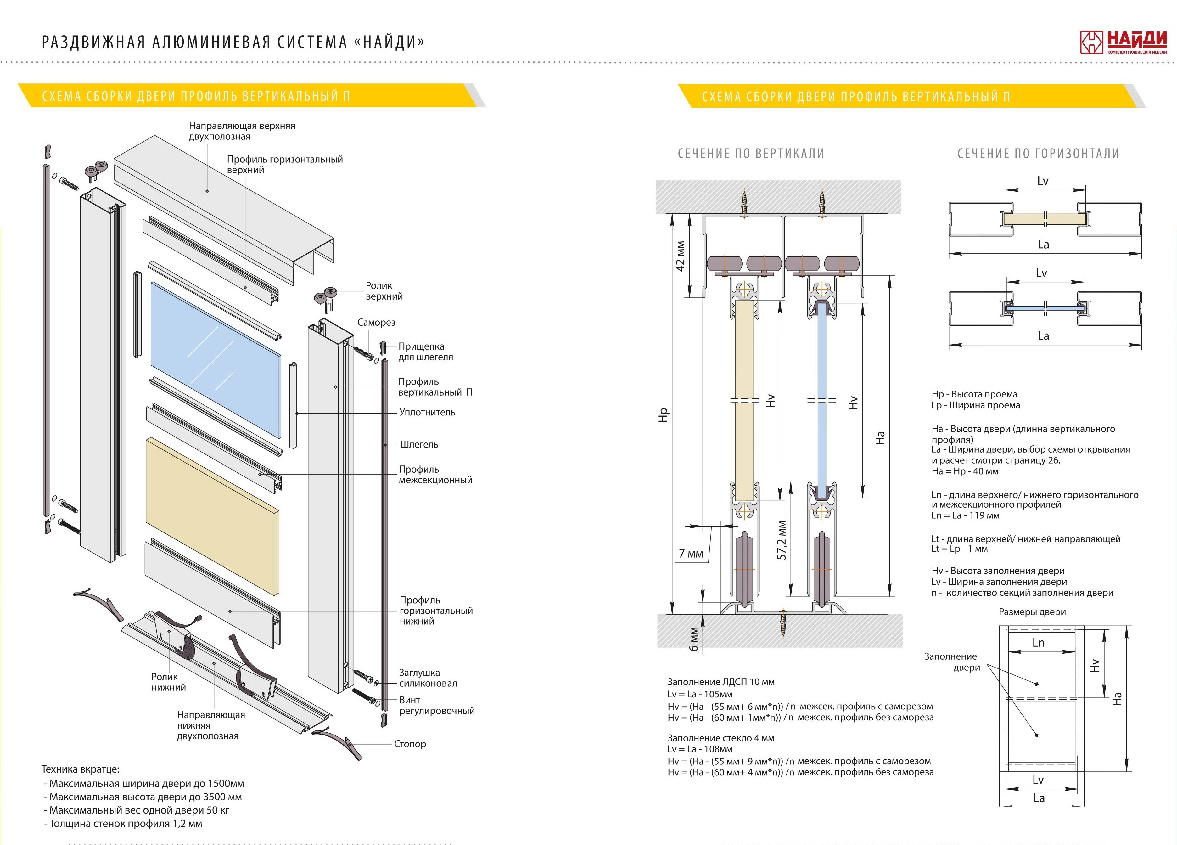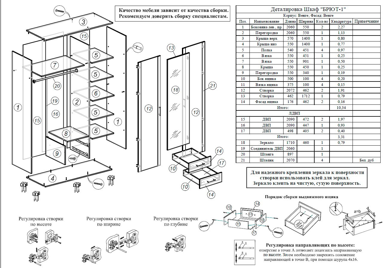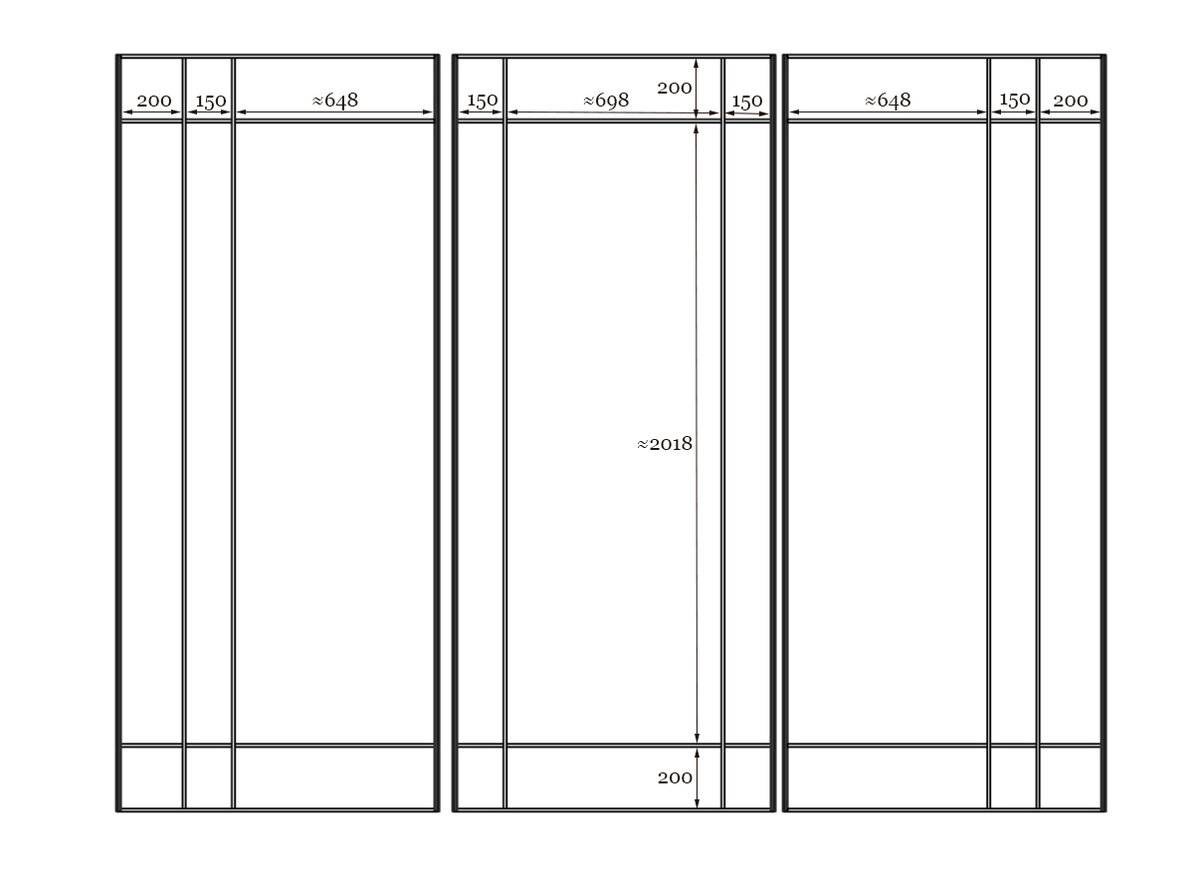 Схема сборки двери шкафа купе с размерами