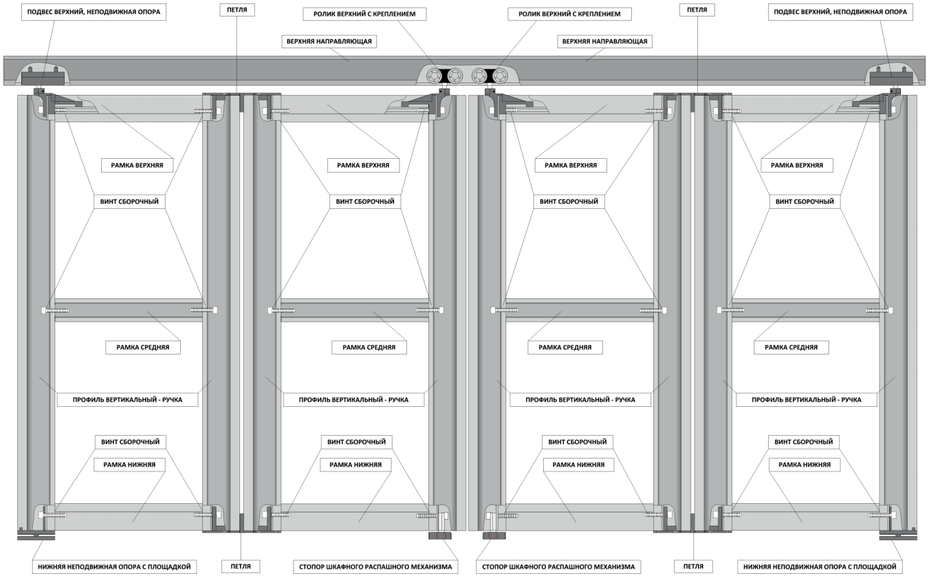 Схема сборки раскладных дверей