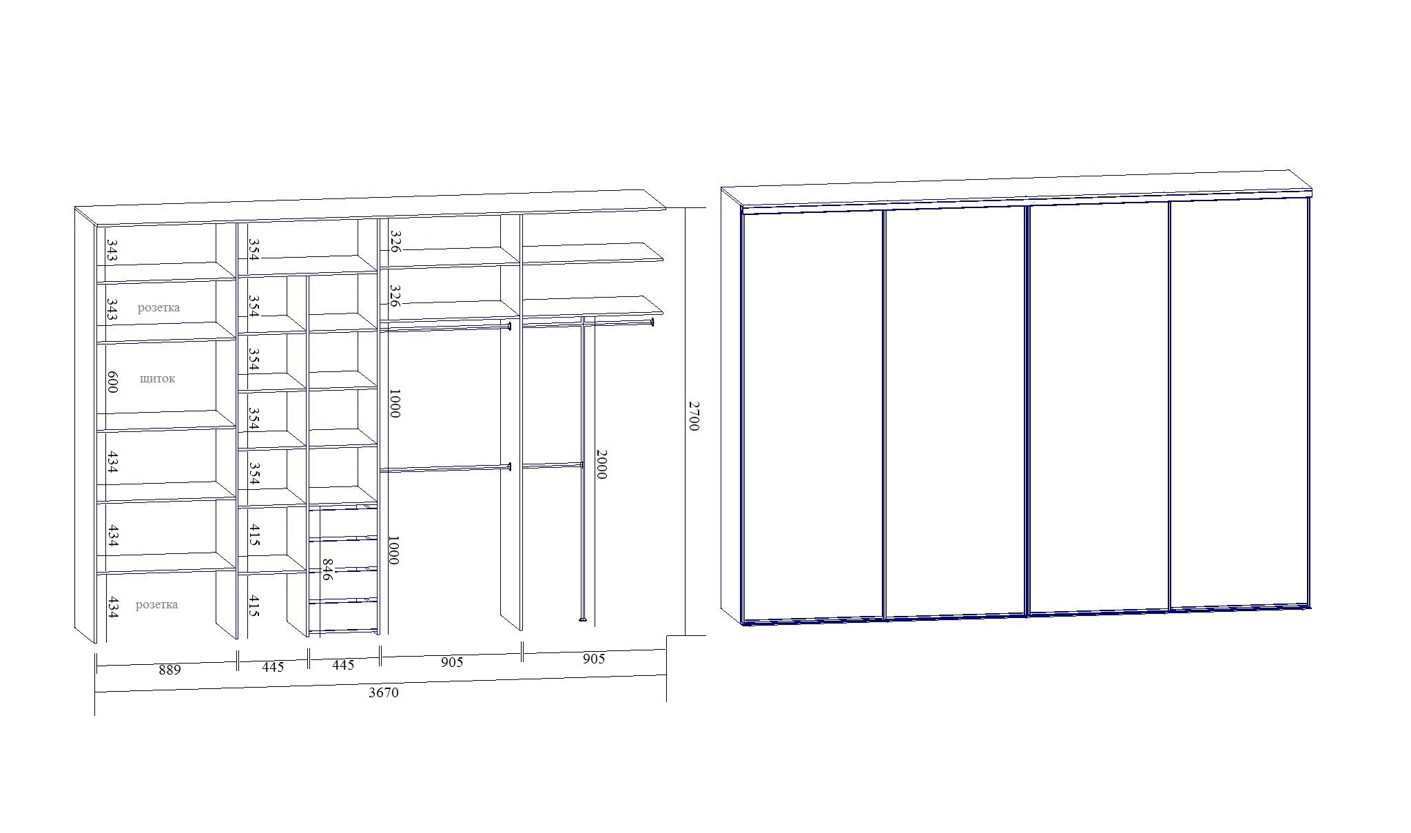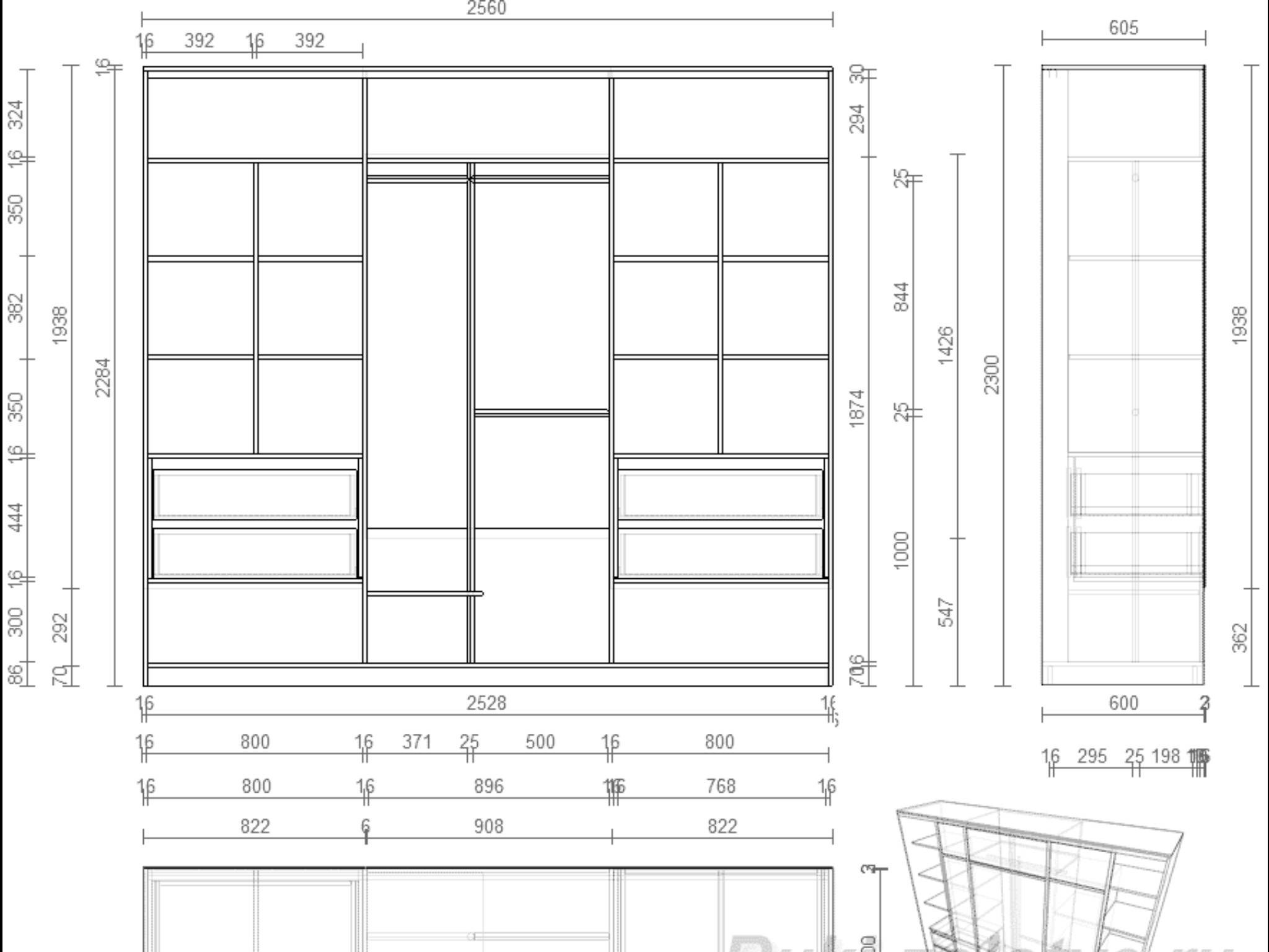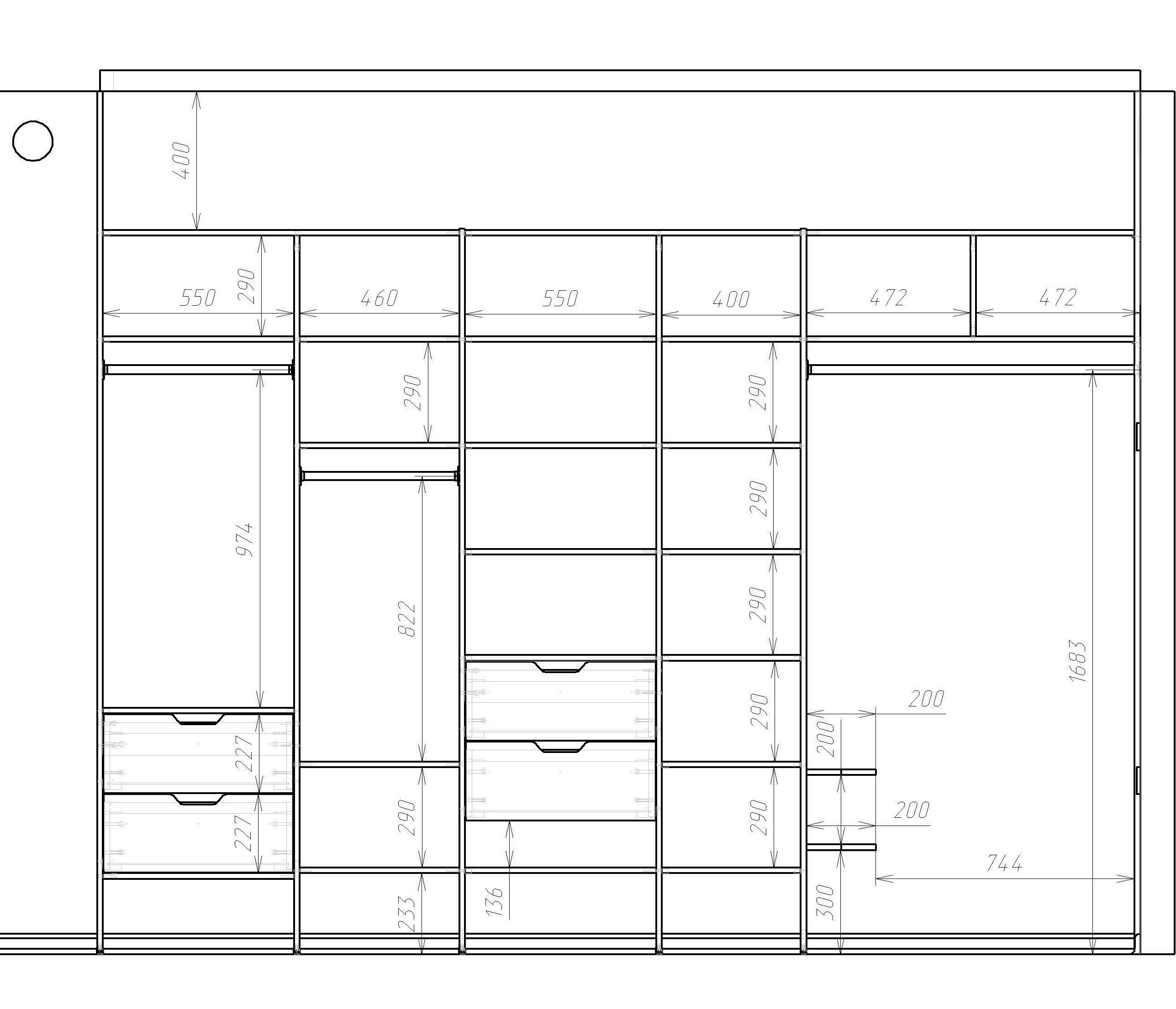 Чертеж шкаф купе ширина 2400