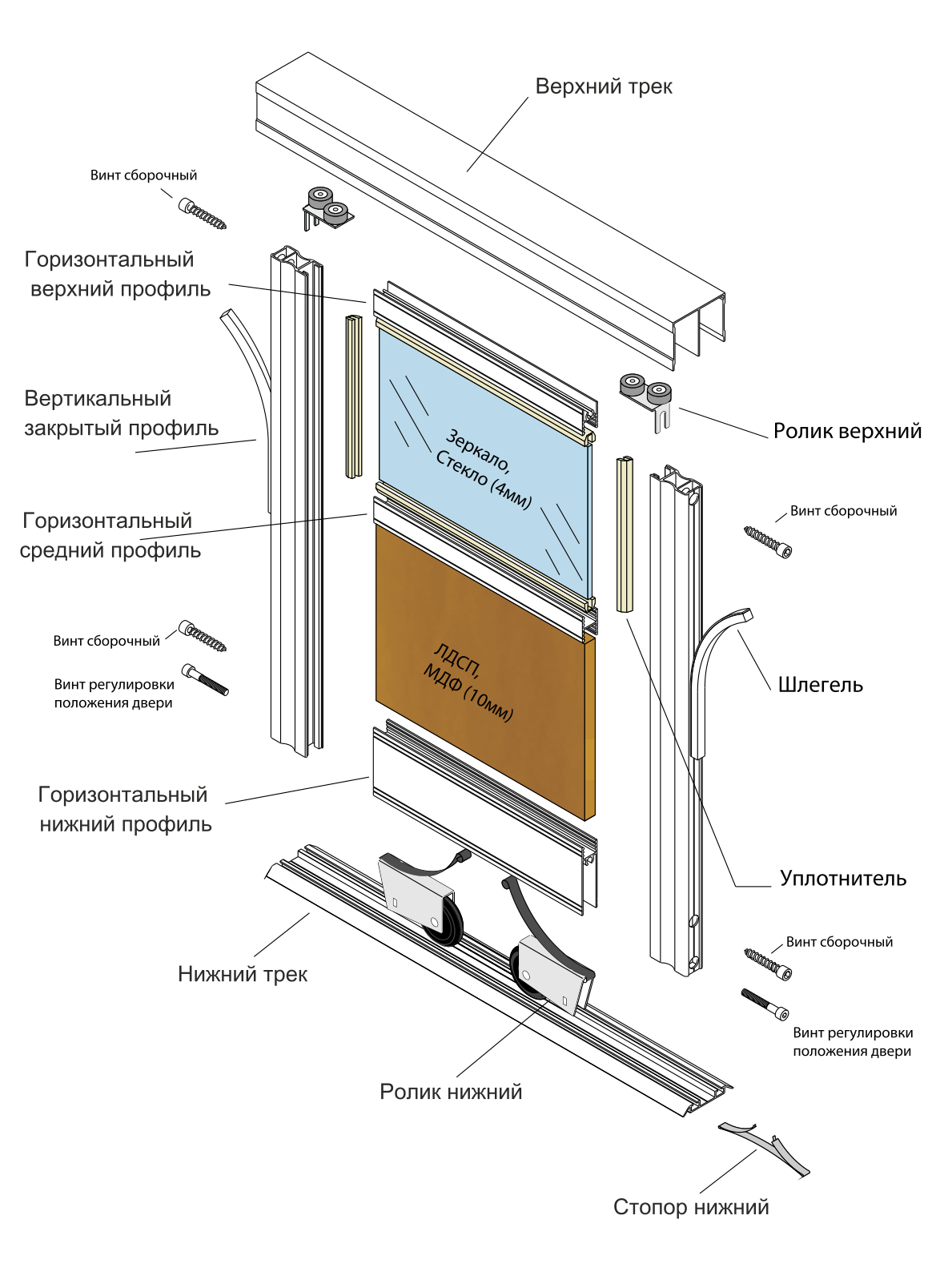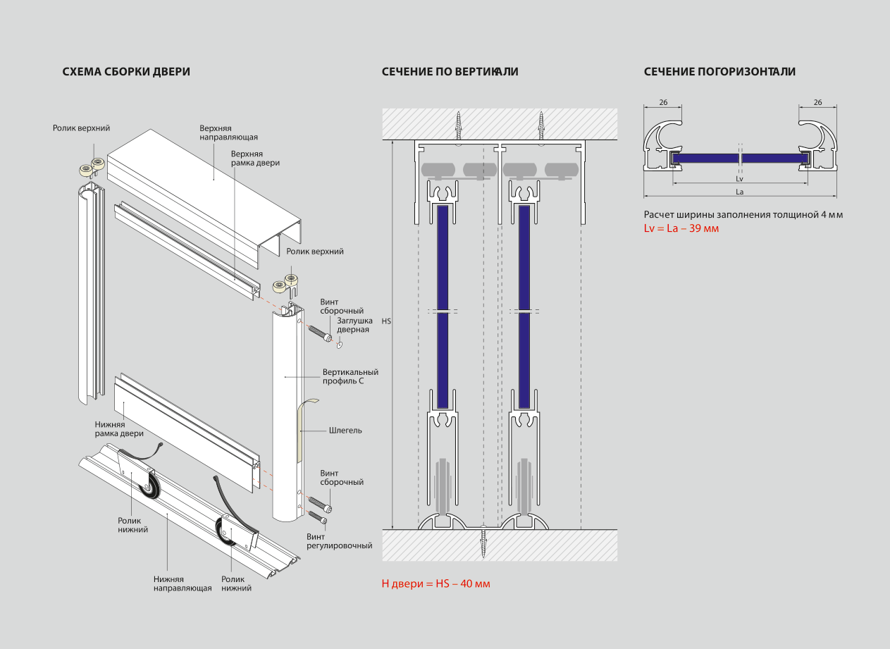 Схема сборки раздвижных дверей шкафа купе