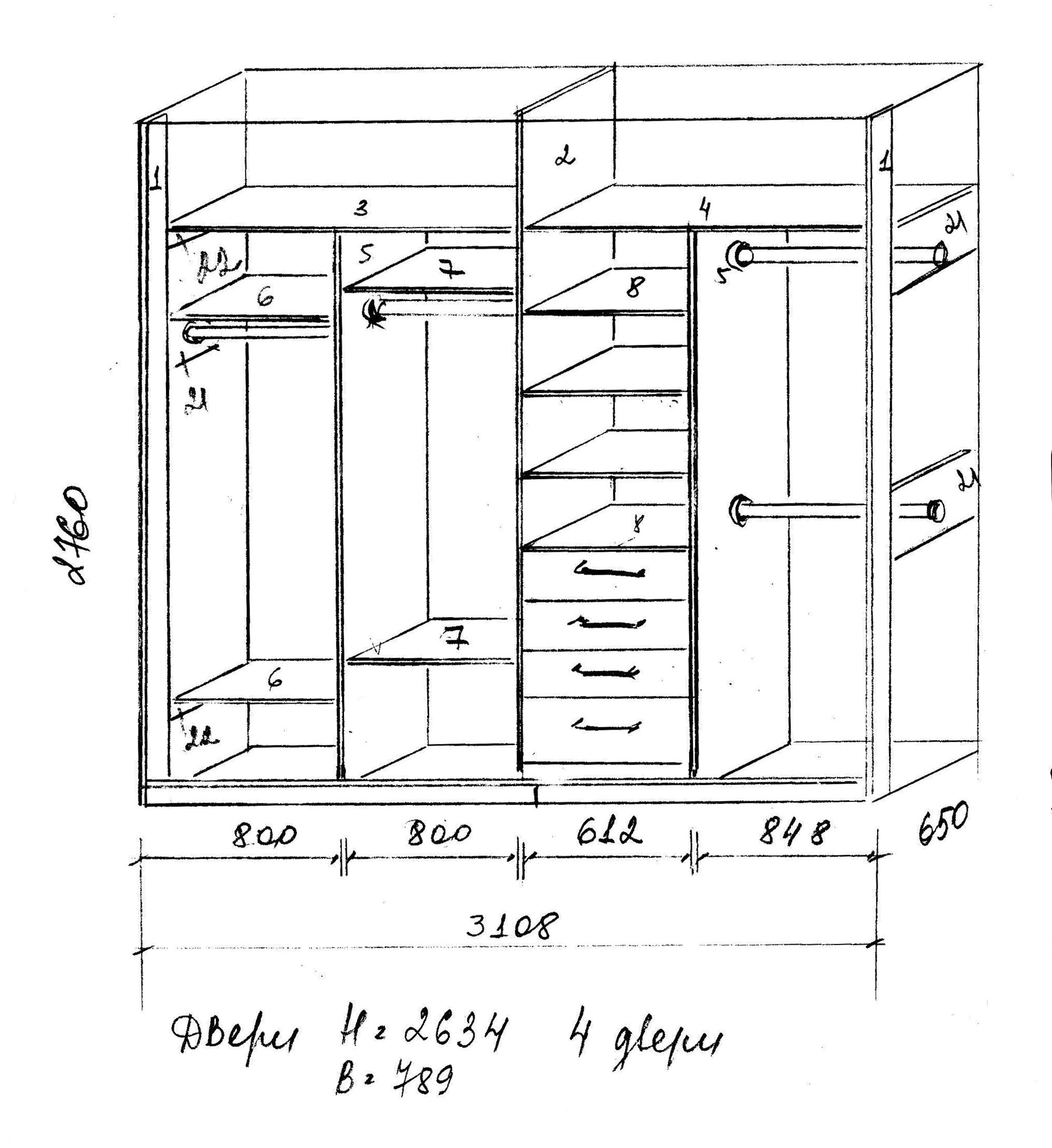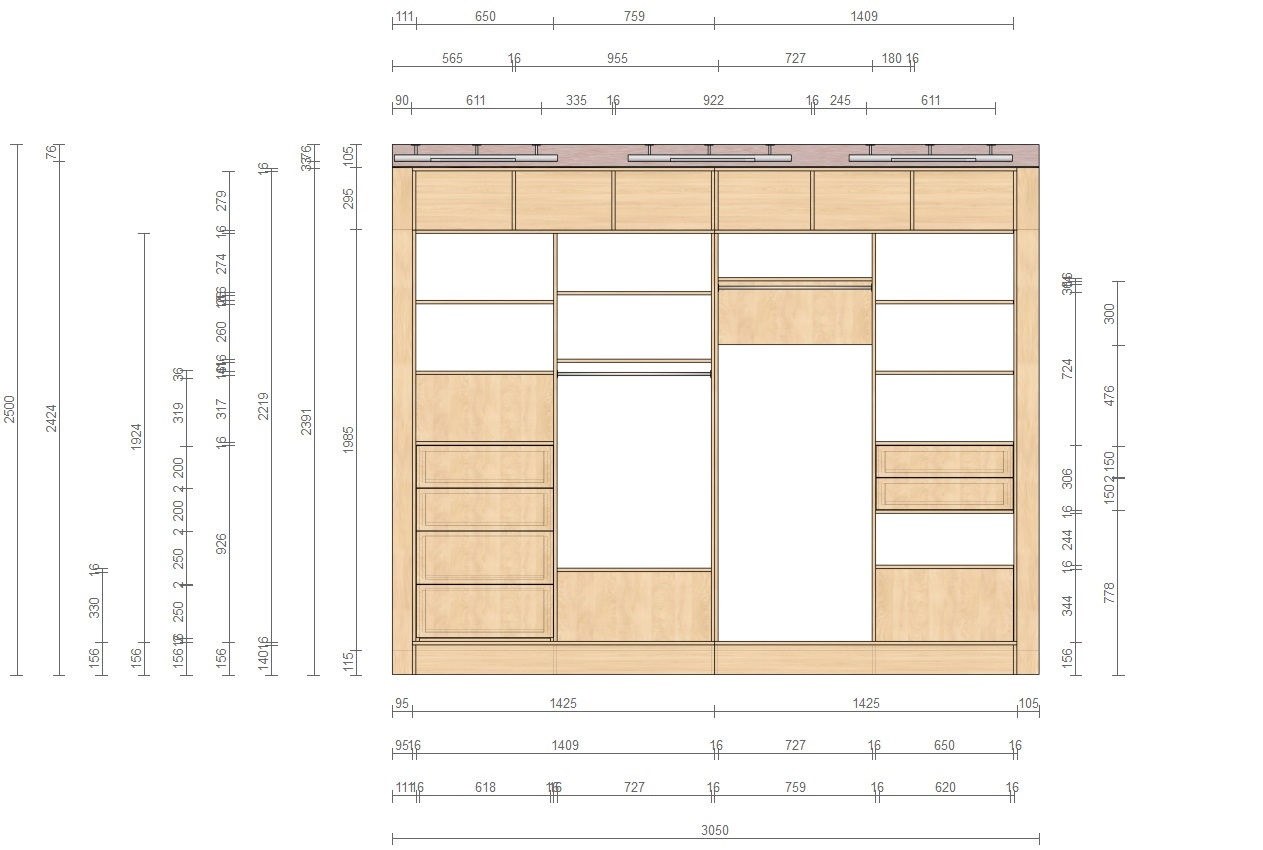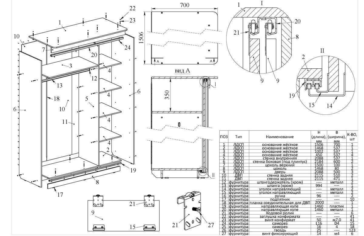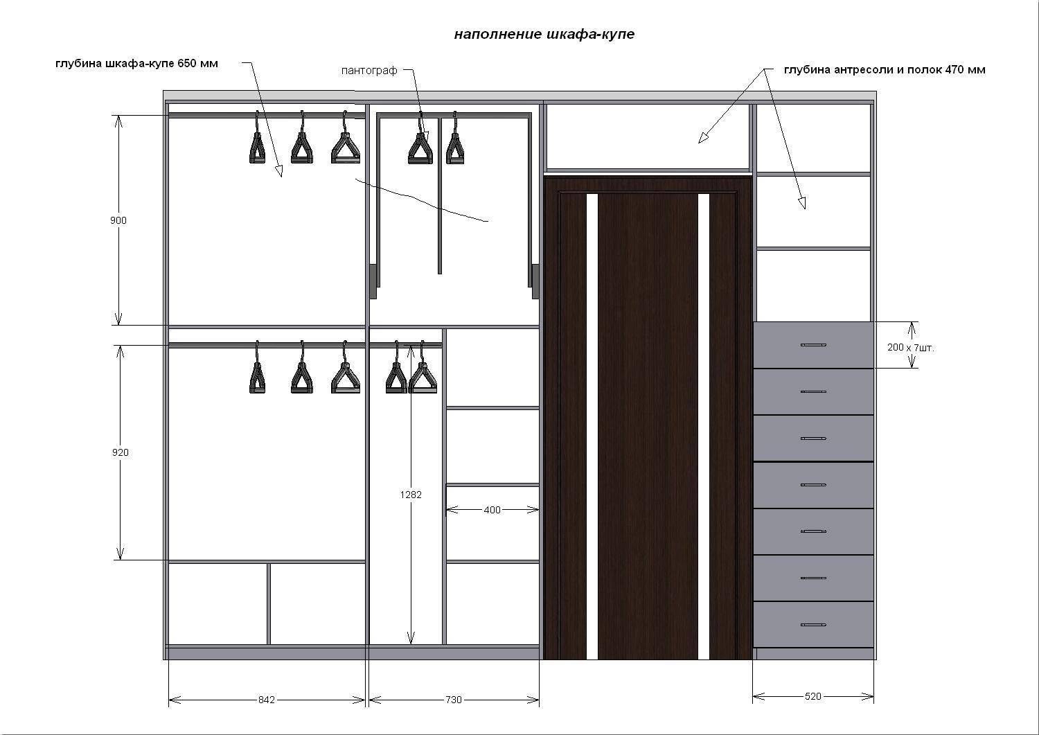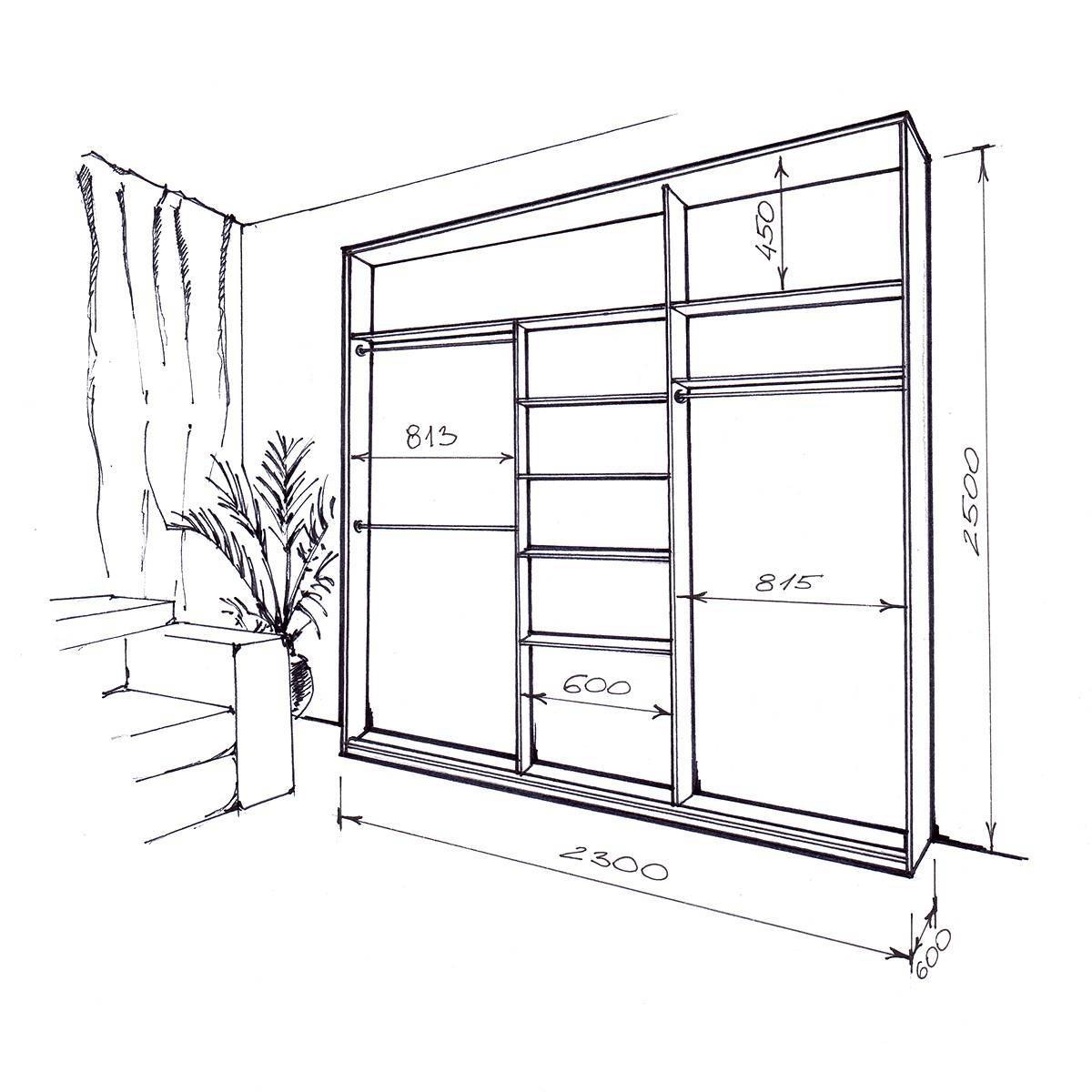 Встроенный шкаф купе схема чертеж
