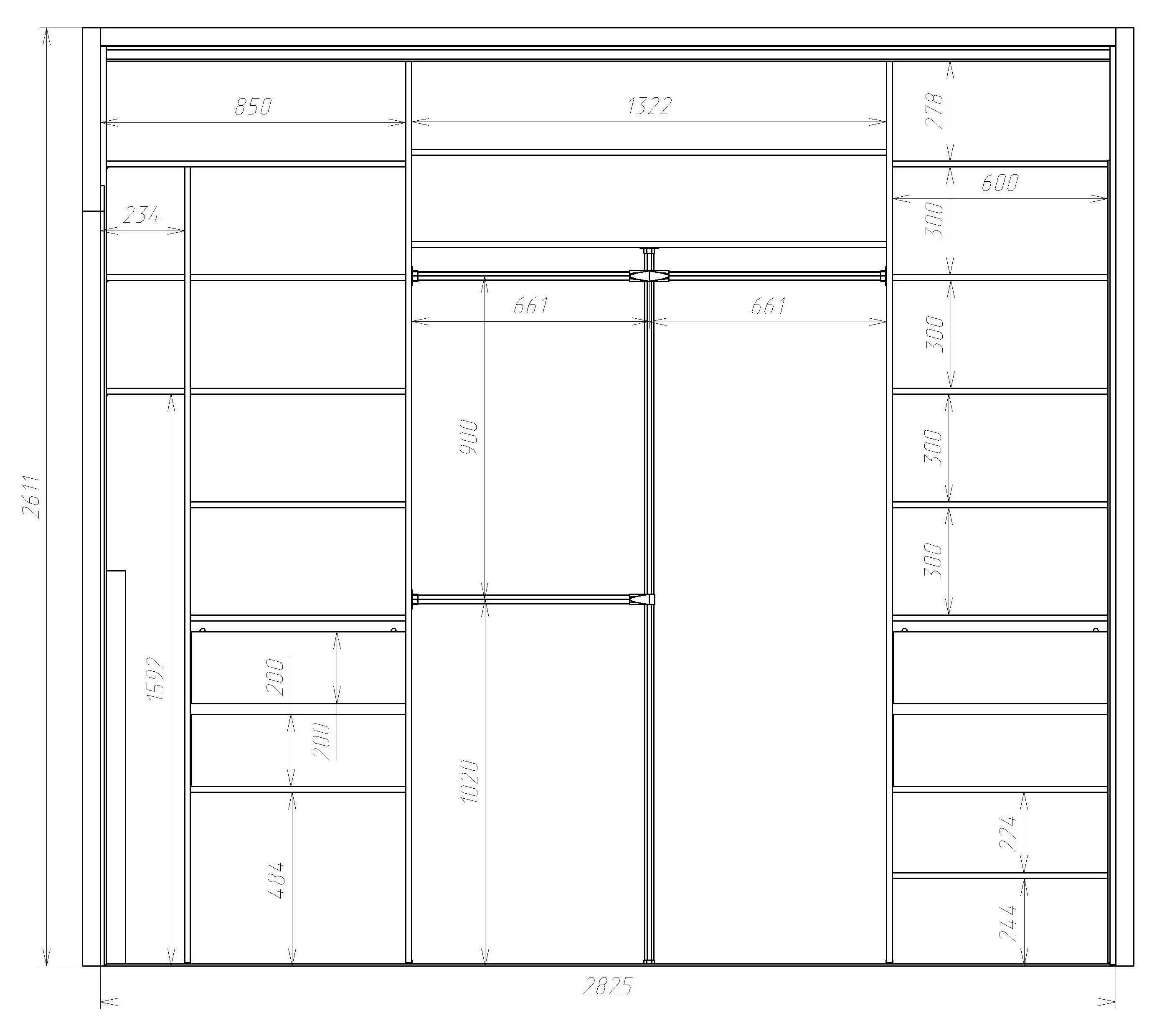 Шкаф купе 2400х2400х600 схема