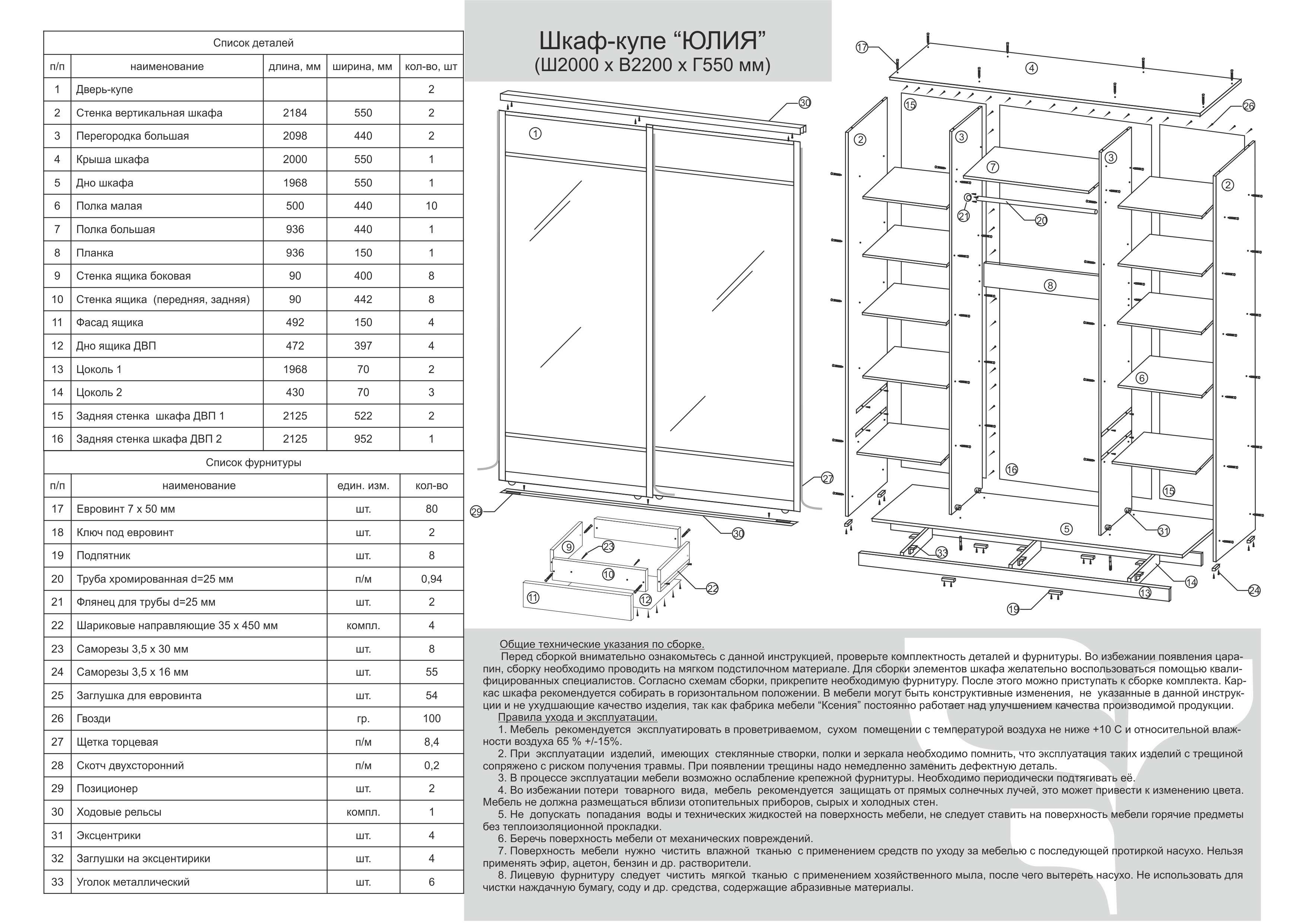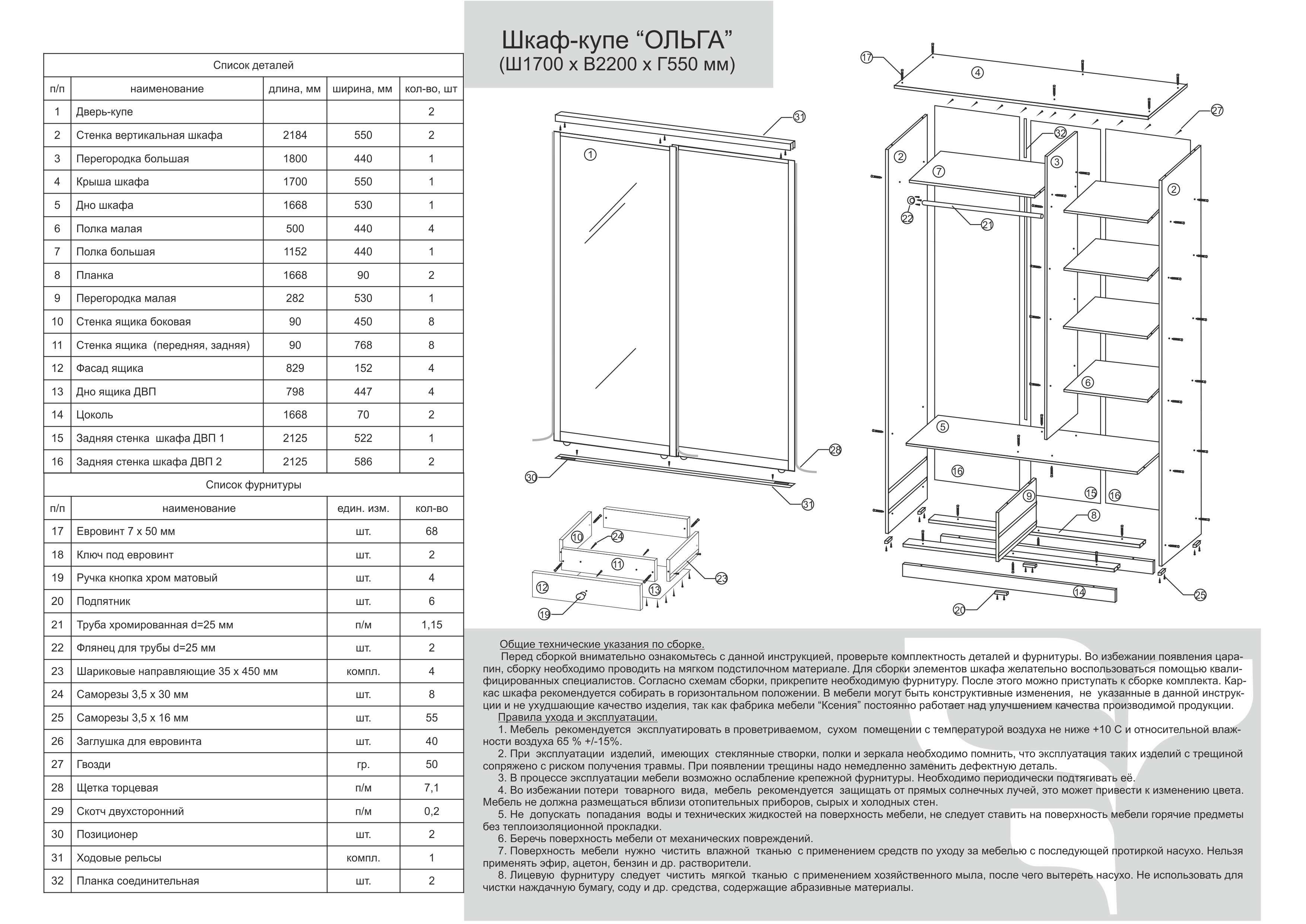 Шкаф-купе маэстро 1700х2200х610 схема сборки