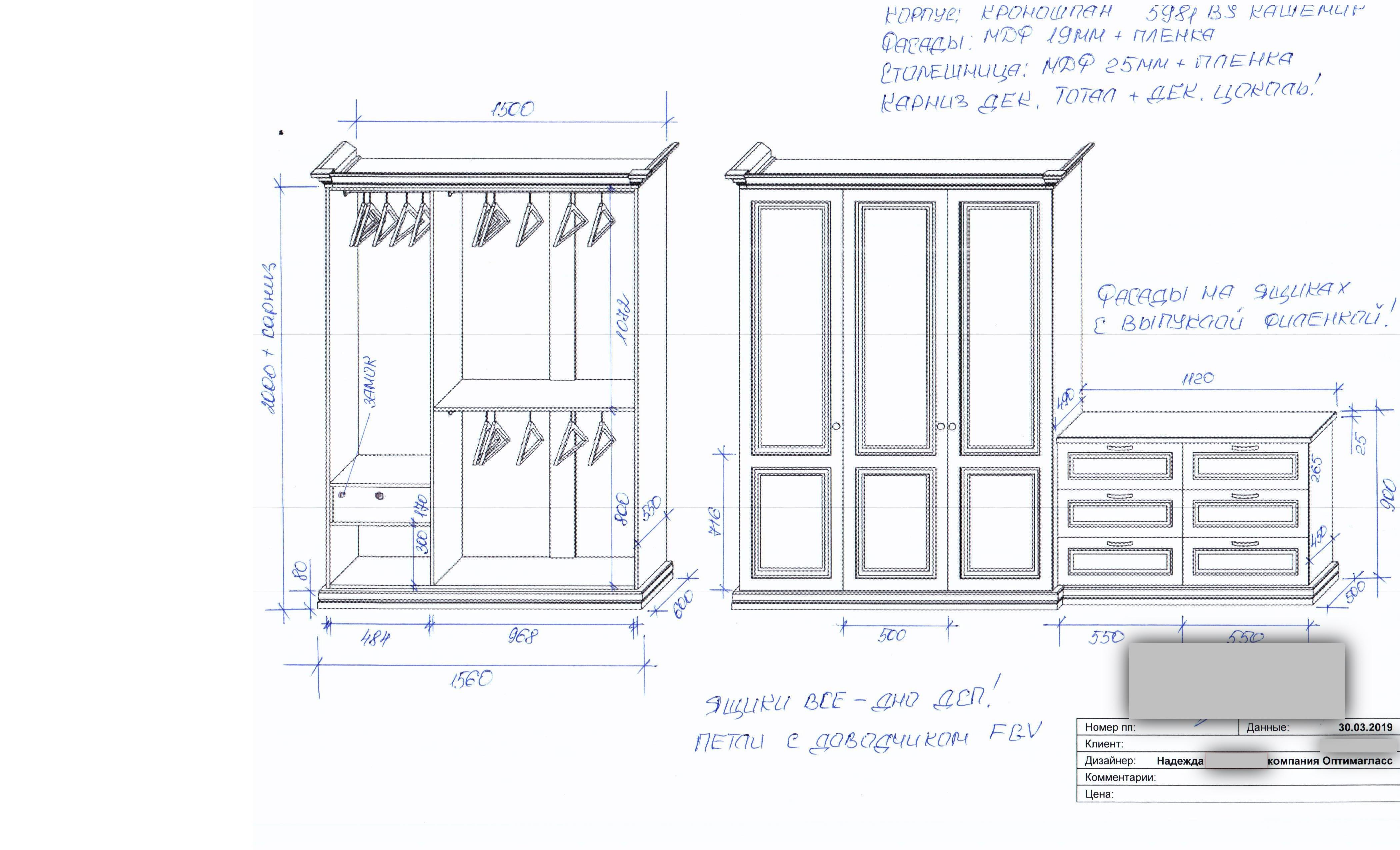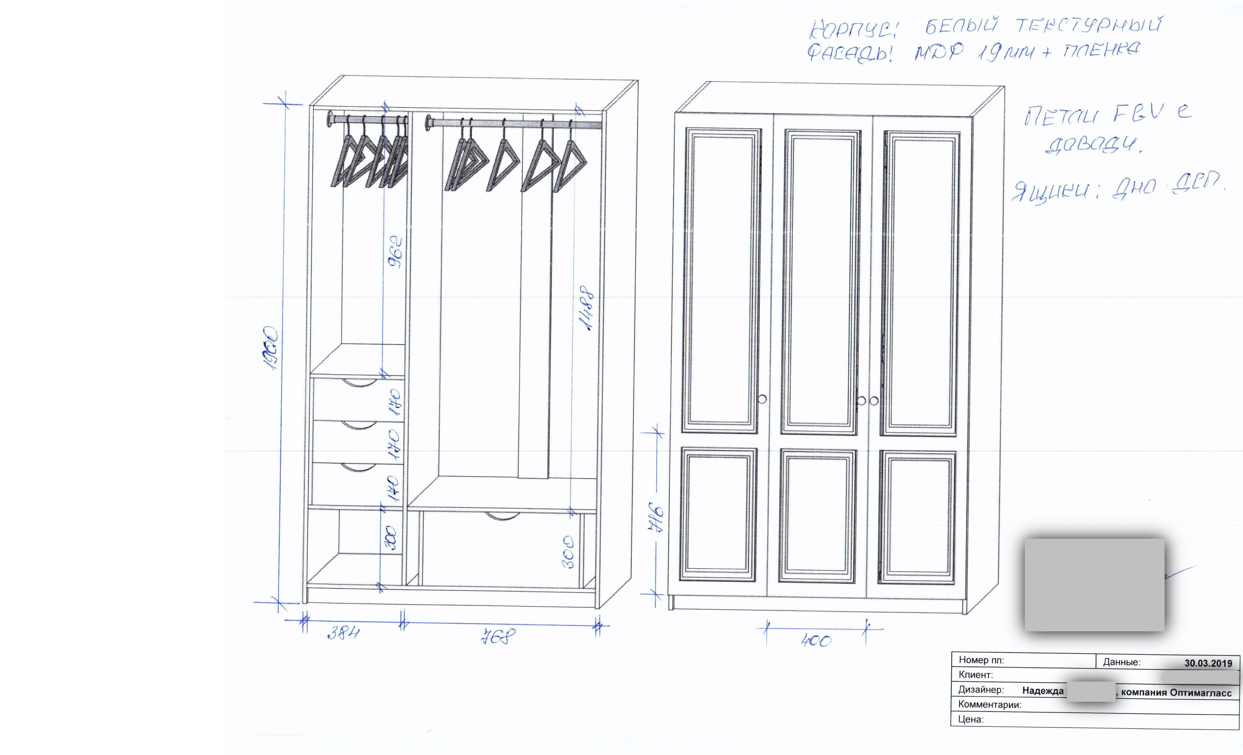 Шкаф купе чертежи глубина 430мм
