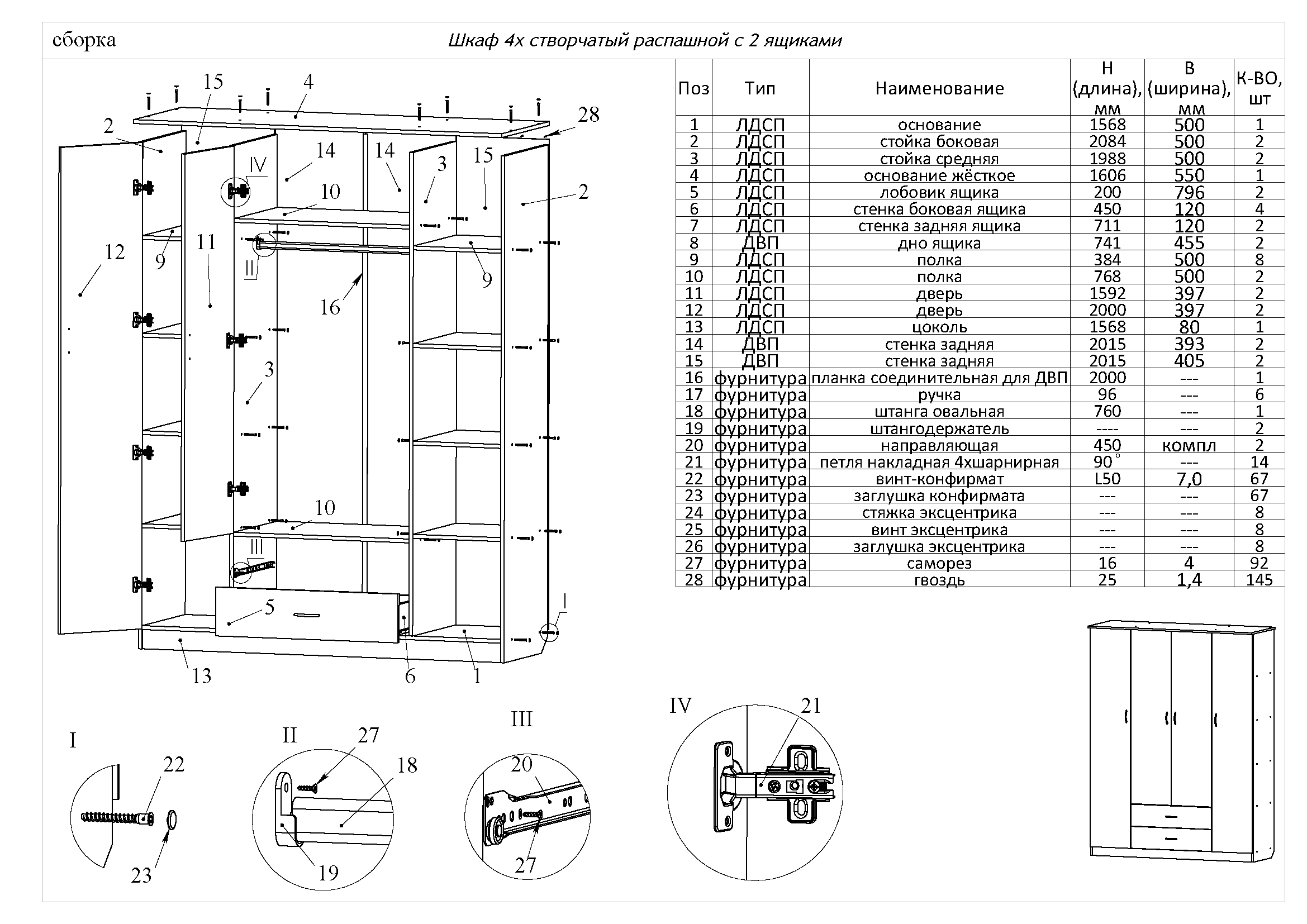 Шкаф купе Dolap схема сборки