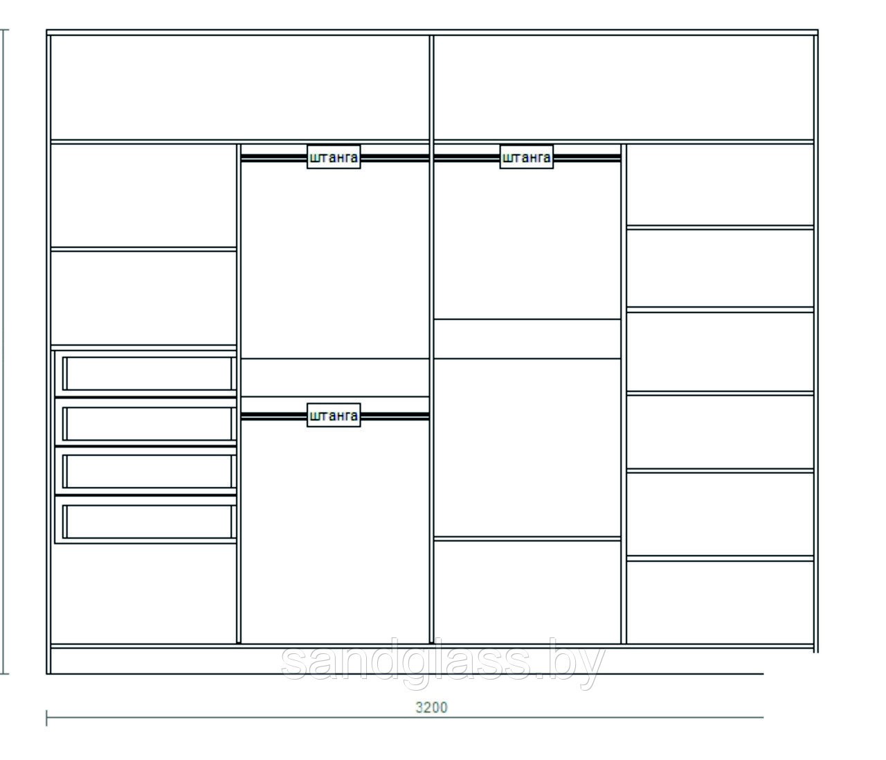 Шкаф четырехстворчатый распашной 2000/2200 наполнение