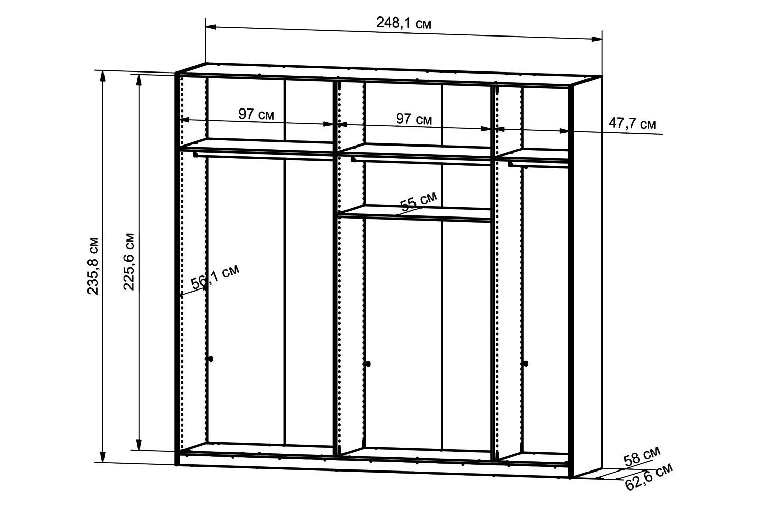 Шкаф купе 55 см глубина чертеж
