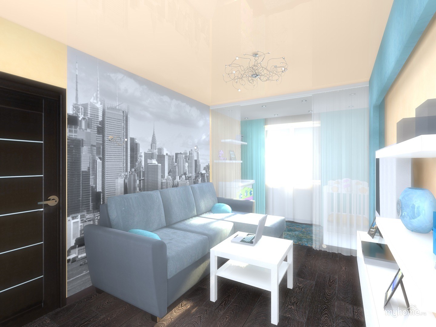 Модульная детская Модекс-2 (дуб золотой/белый/голубой)