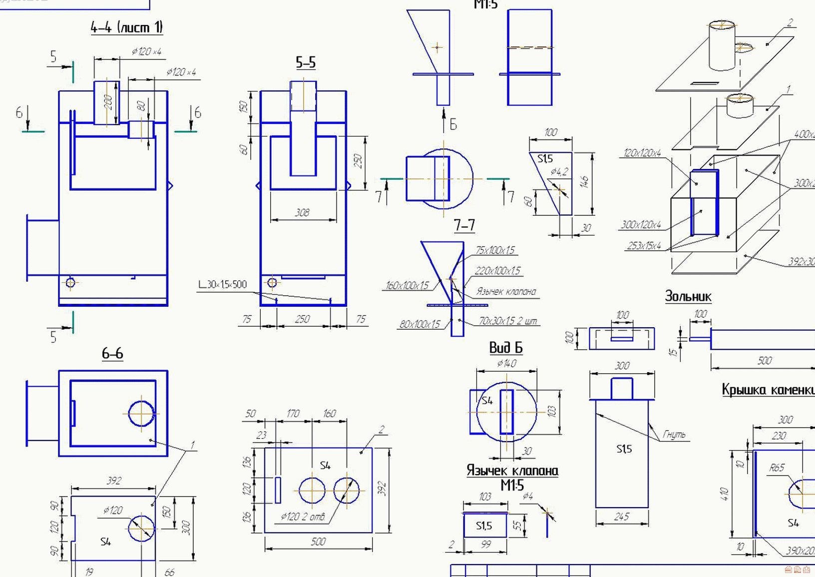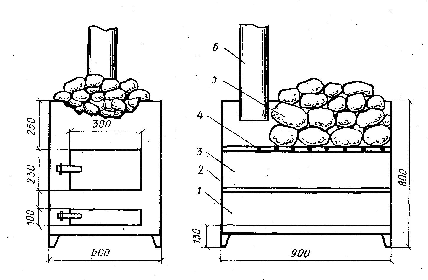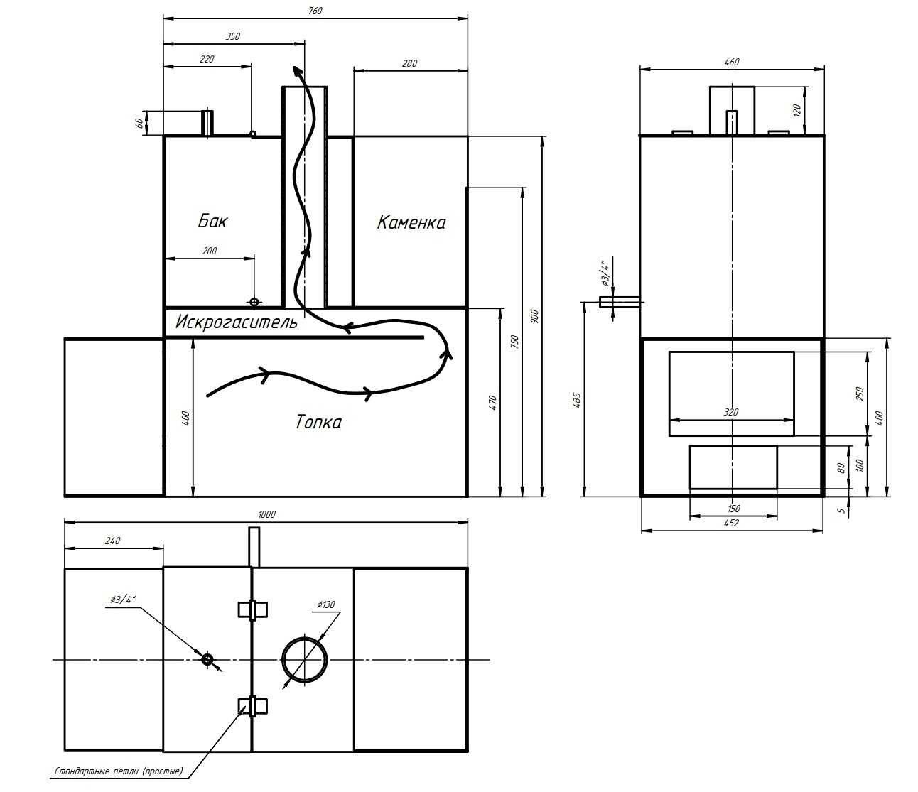 Печь для бани с закрытой каменкой из трубы 530 чертежи вертикально