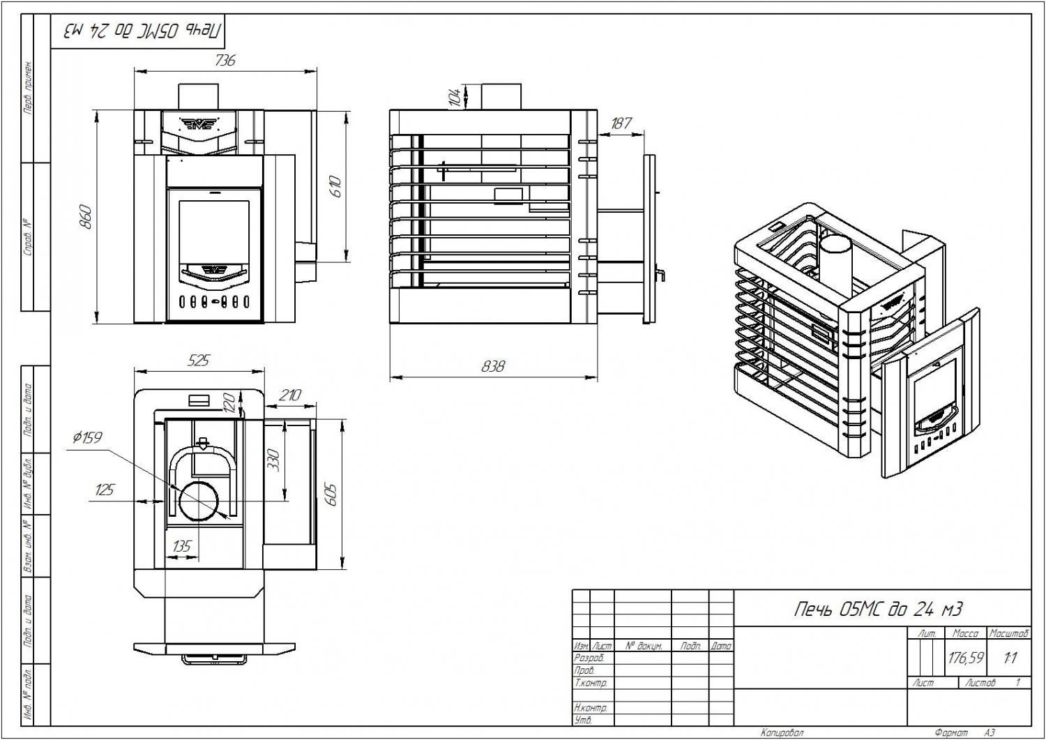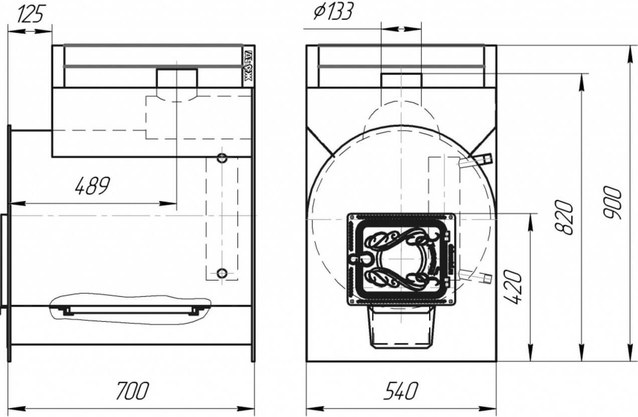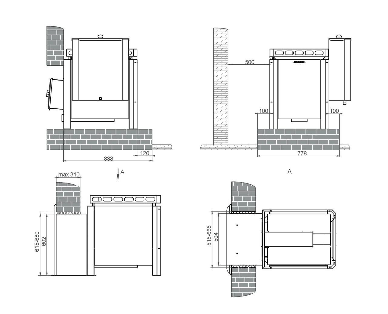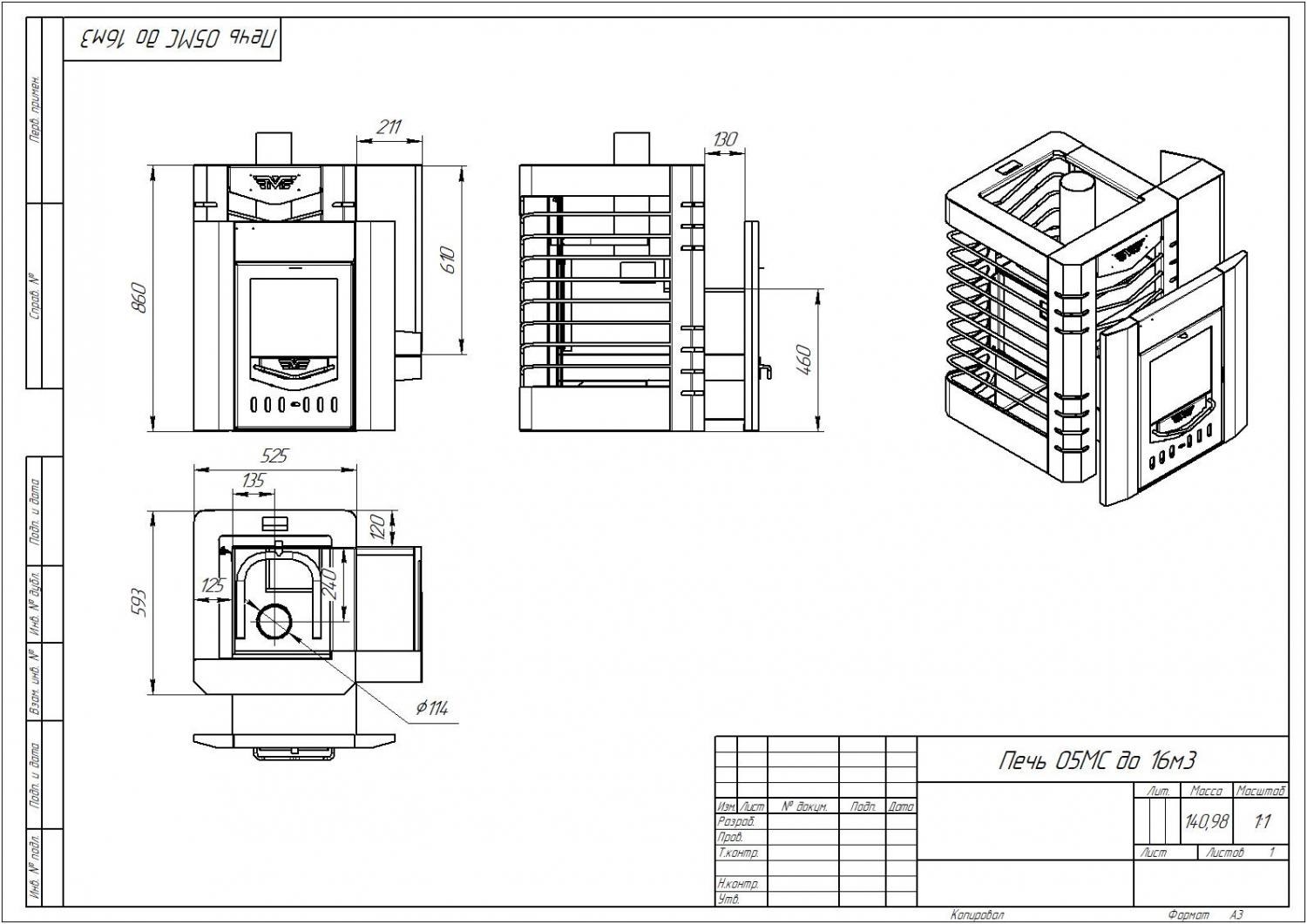 Печь для бани с закрытой каменкой из трубы 530 чертежи вертикально