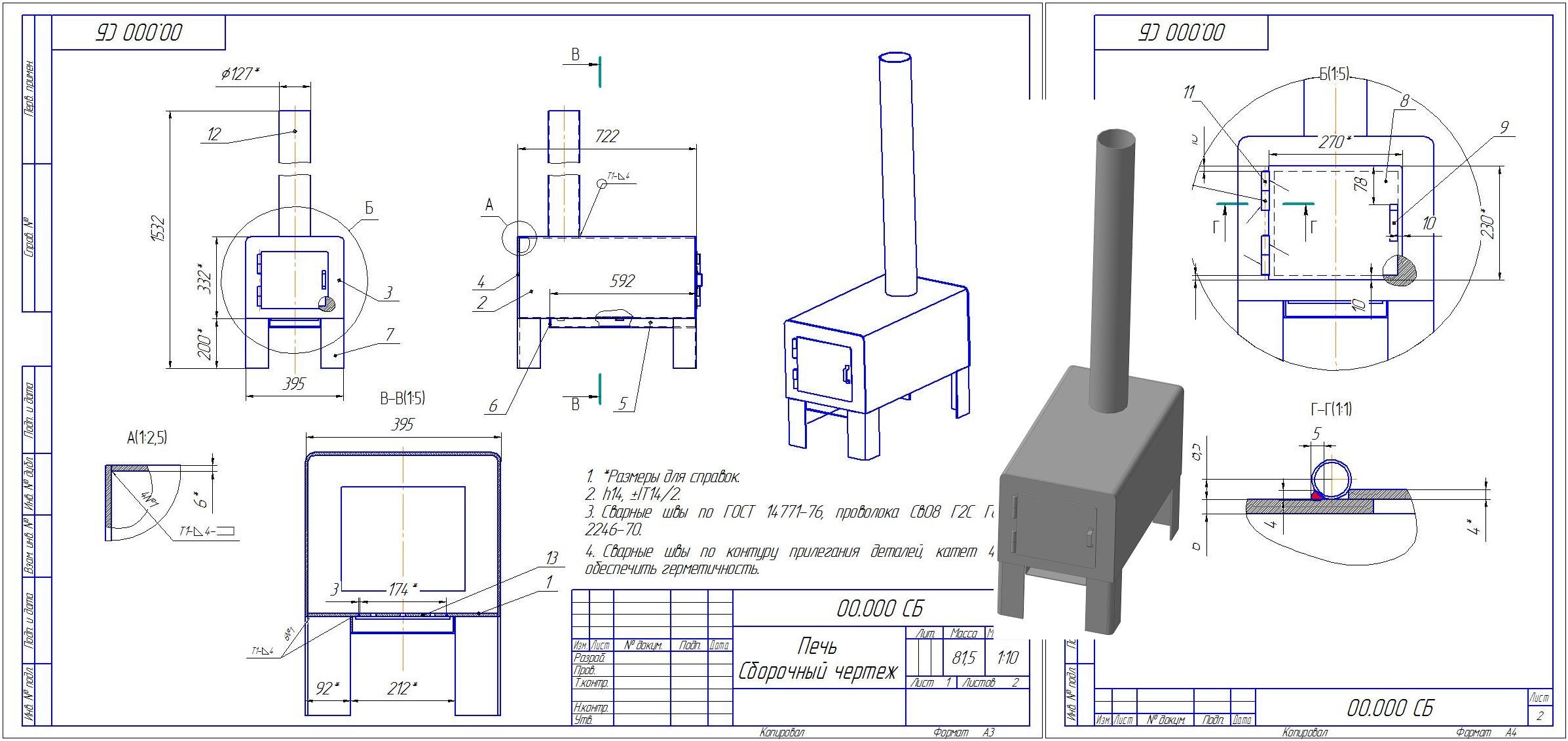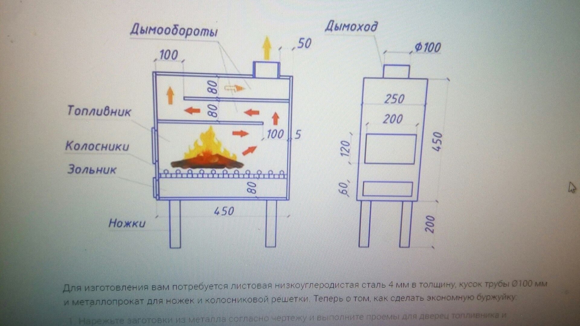Печь буржуйка ТЕПЛОСТАЛЬ чертежи