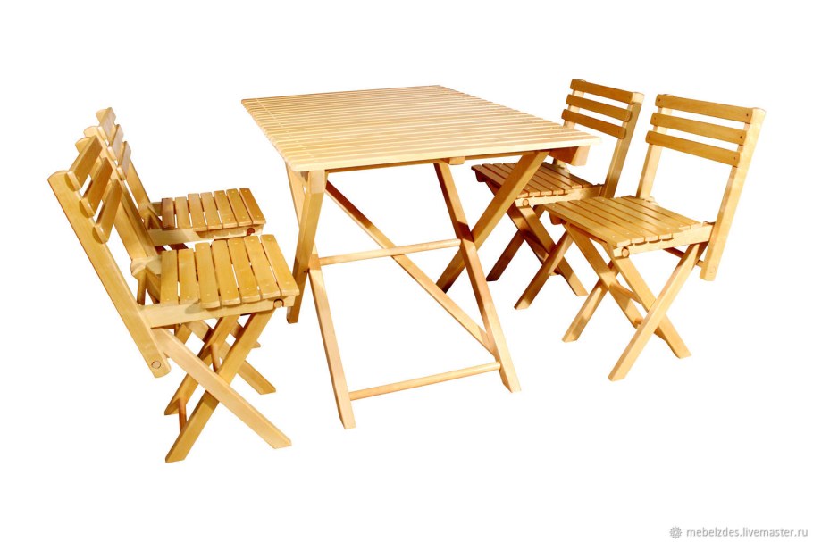 Комплект садовой мебели(стол складной + 2 стула), дерево дуб