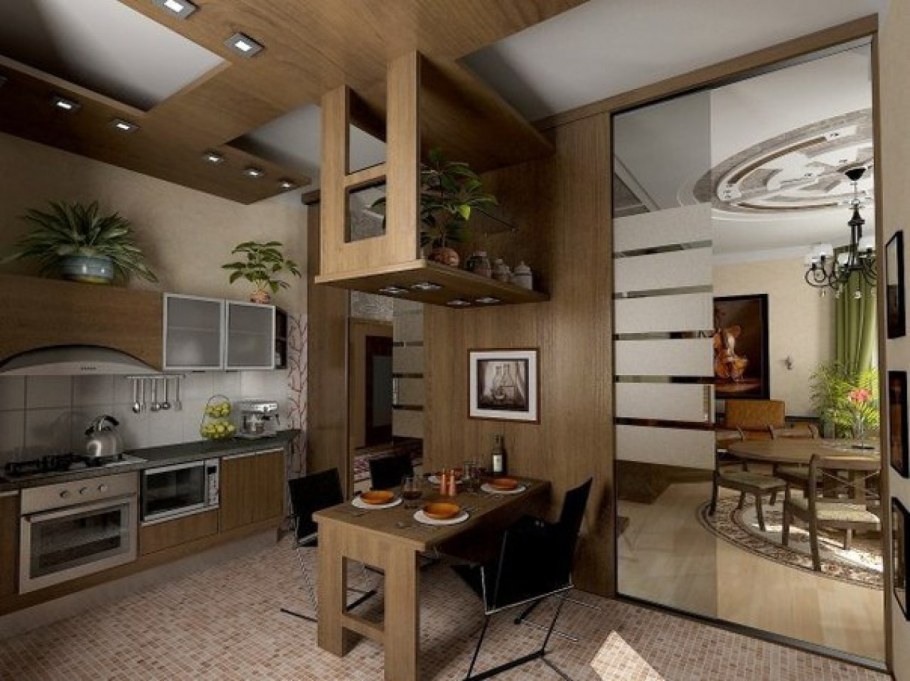 Интерьер кухни-гостиной 30 кв.м в загородном доме