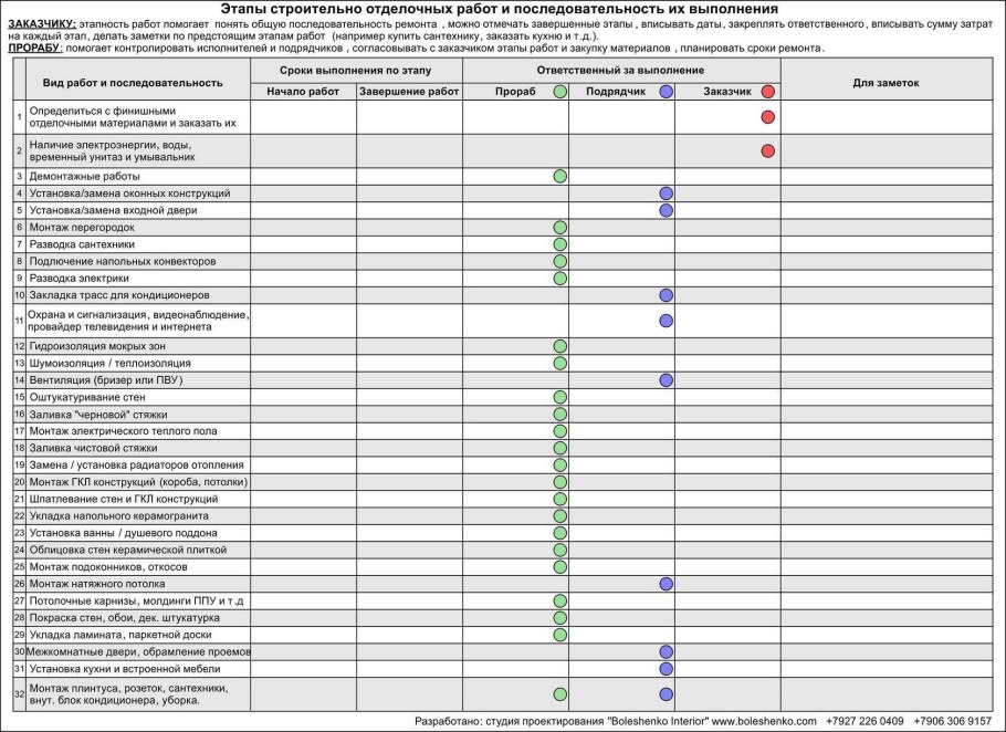 Этапы ремонта таблица