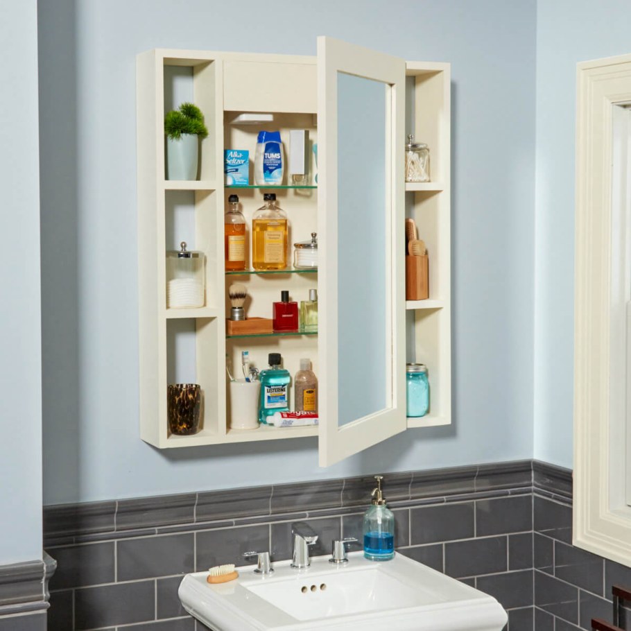 Горизонтальный шкаф в ванную комнату навесной (68 фото)