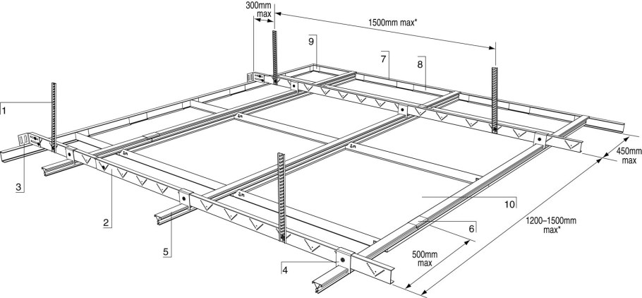 Монтажная схема каркасов подвесных потолков