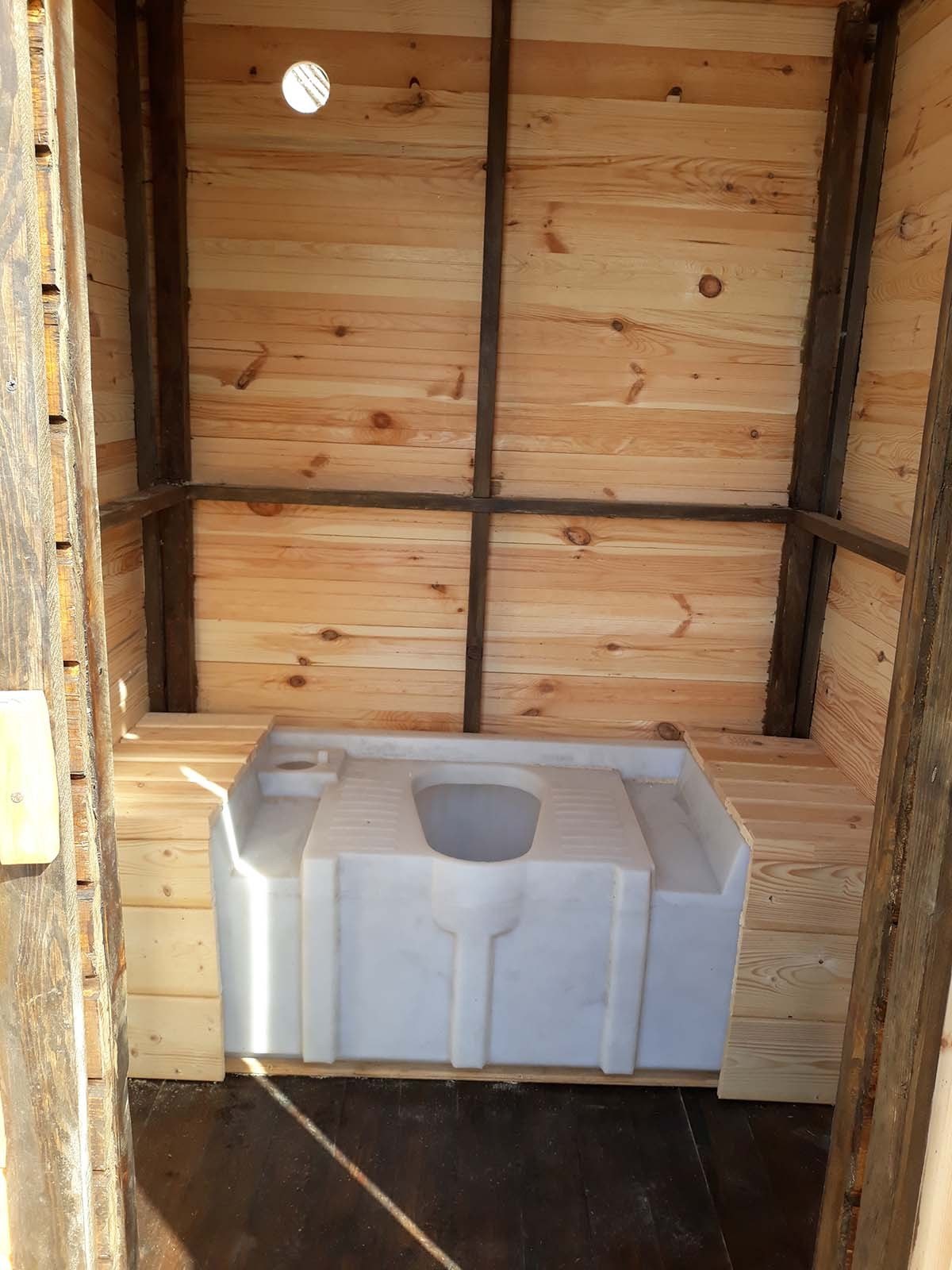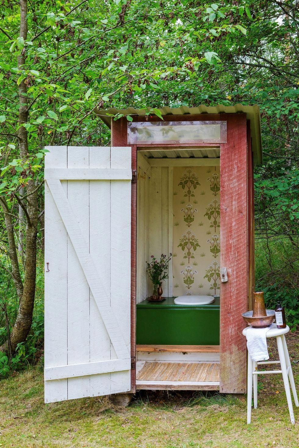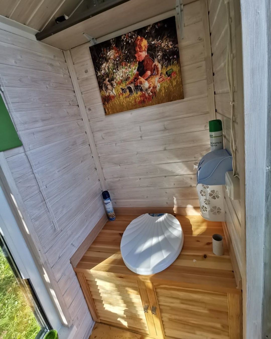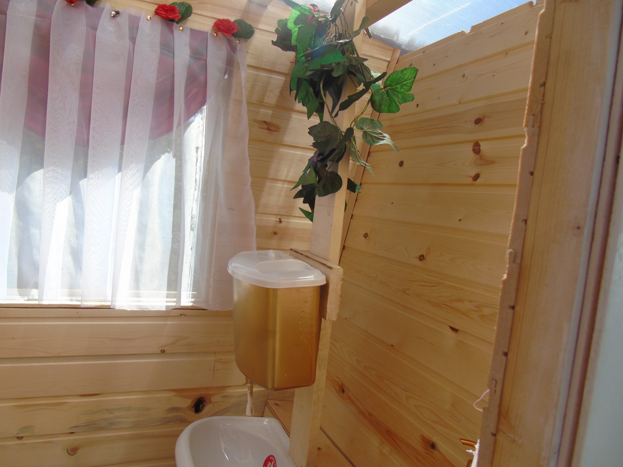 Садовый туалет бочонок а сзади. Него душевая на участке