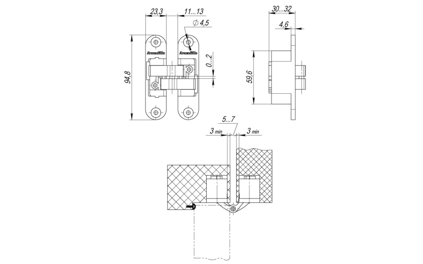 Петля скрытая Anselmi 512 универсальная DX/SX CR sat IND