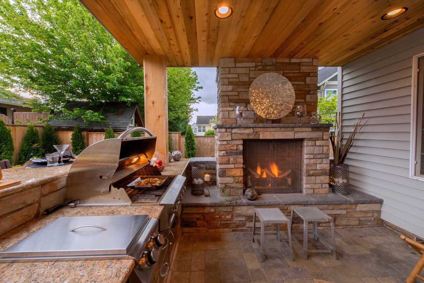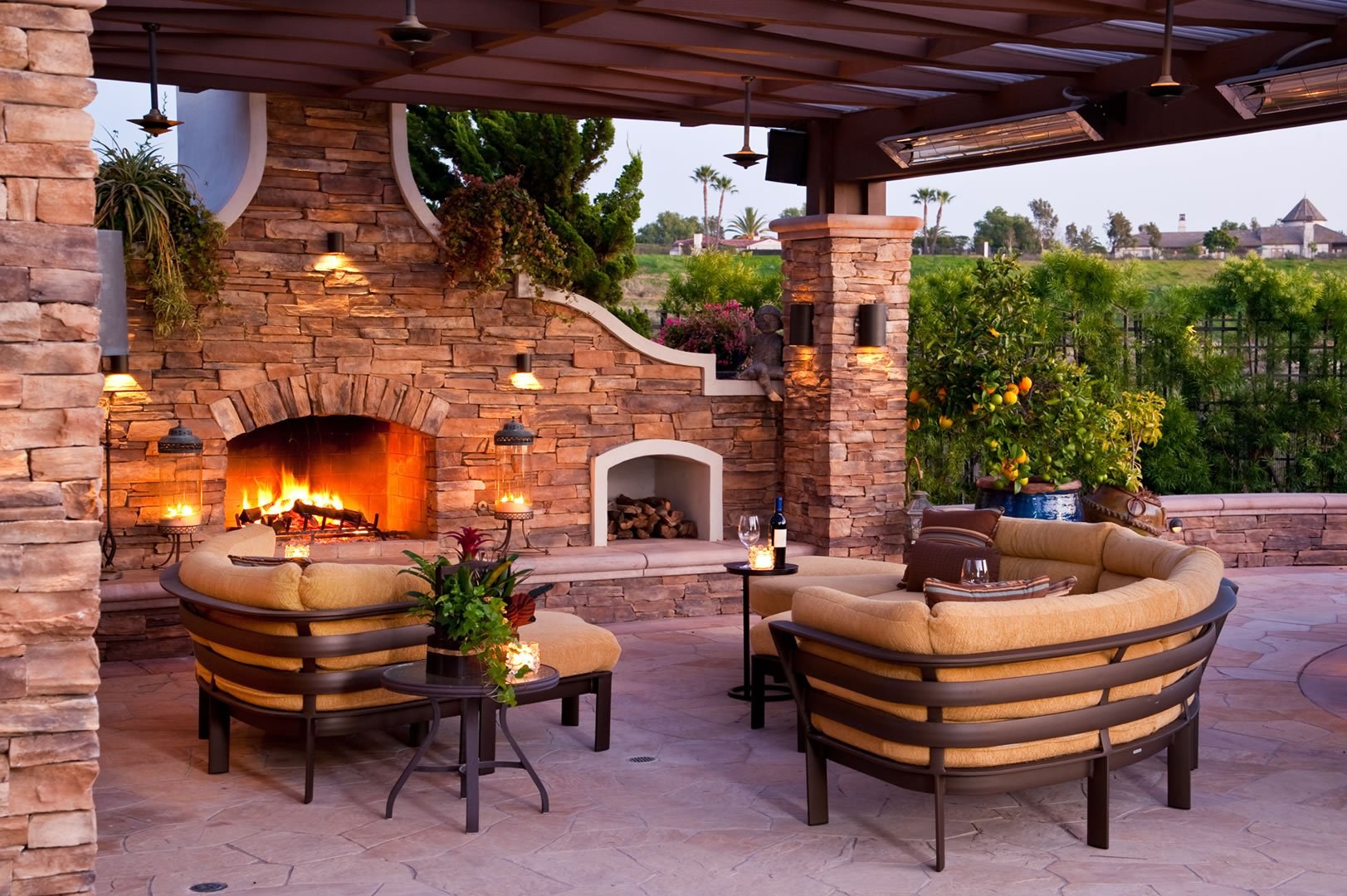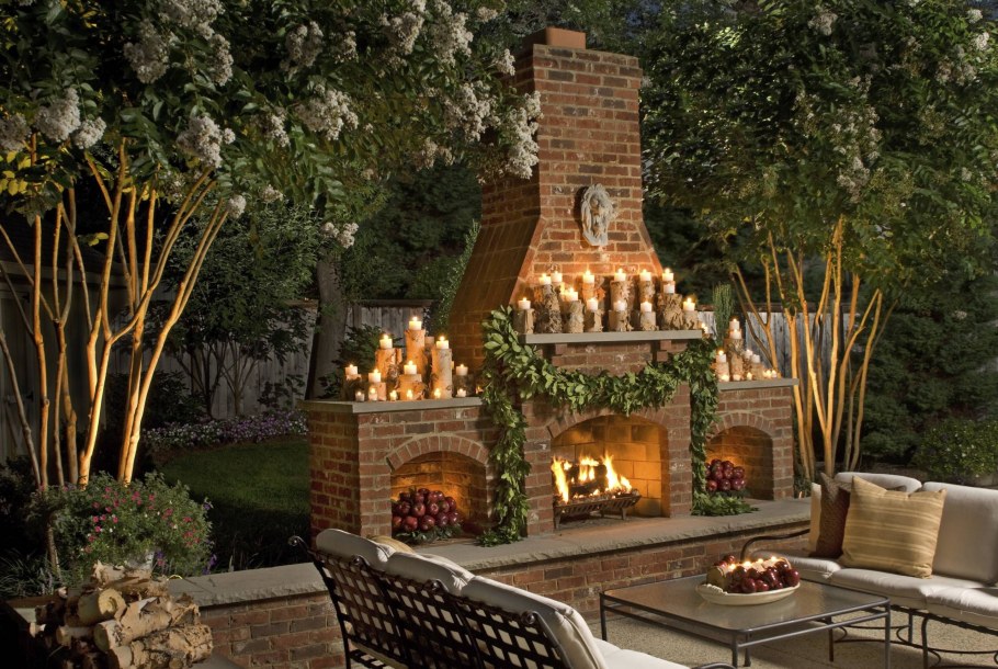 Уличный камин в беседке