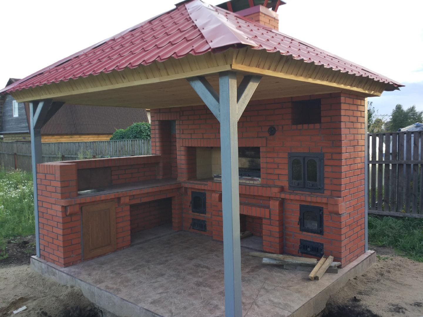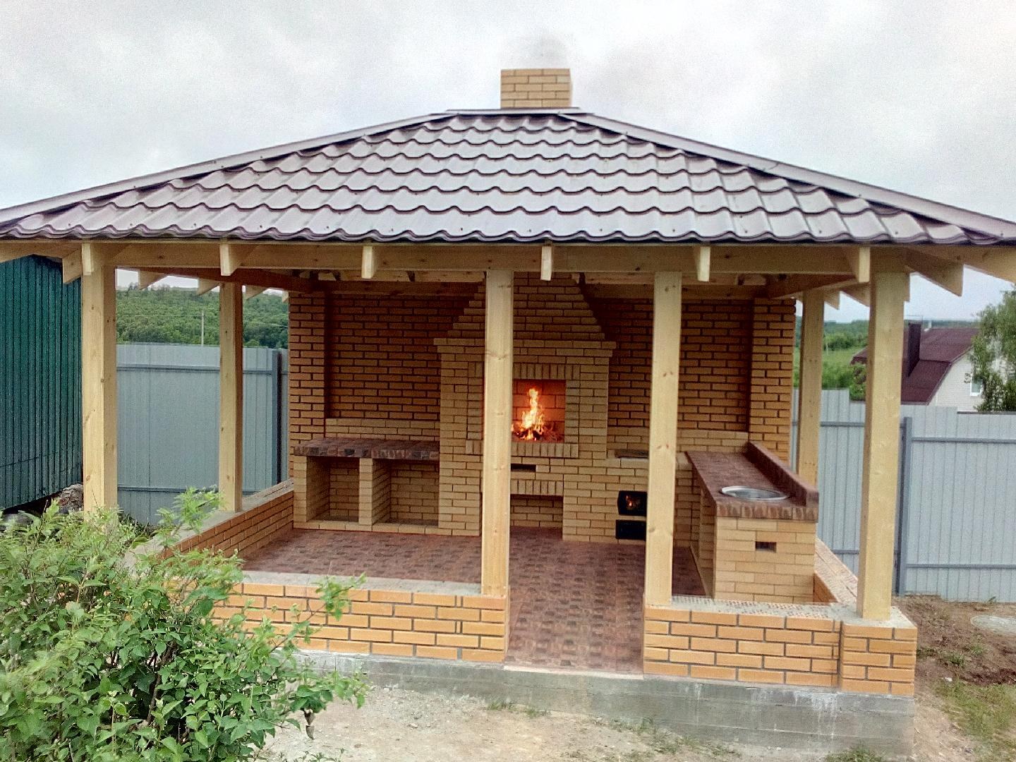 Беседка с мангалом из кирпича 5 на 5 метров