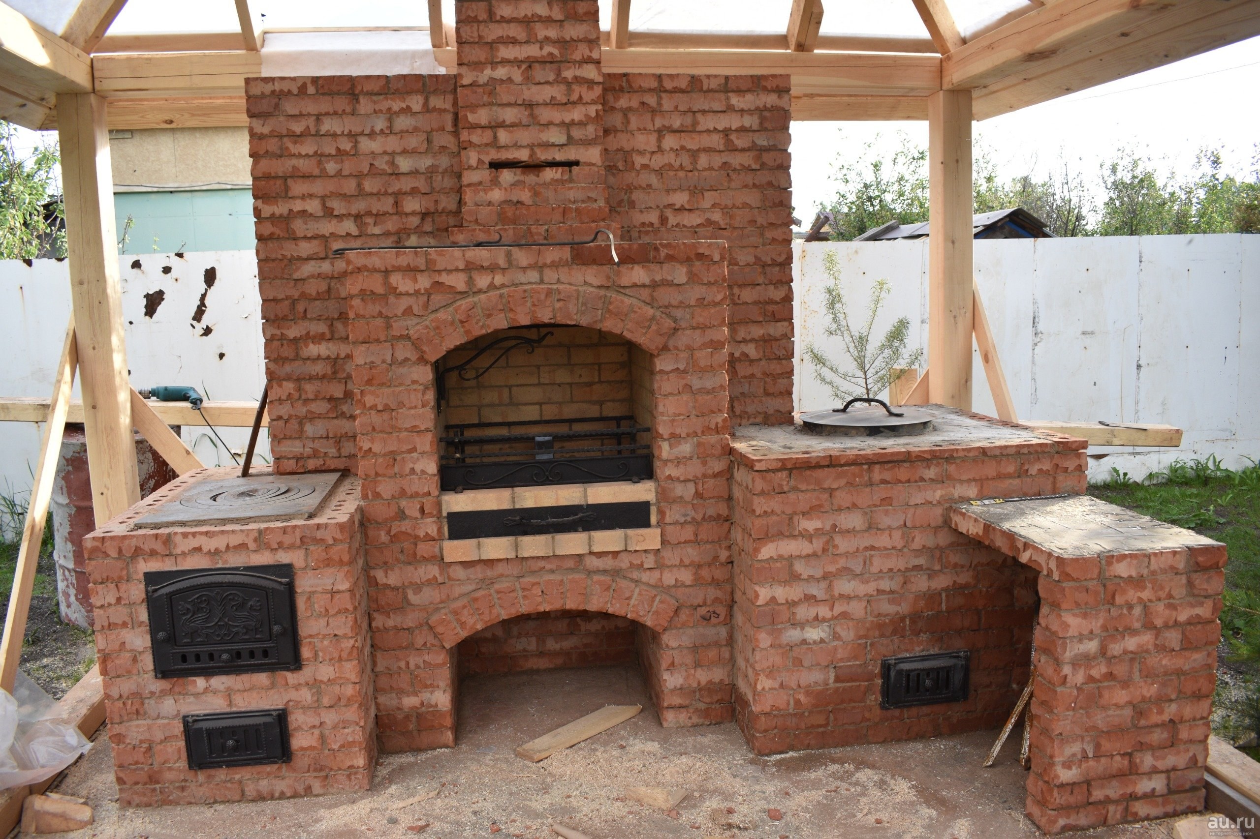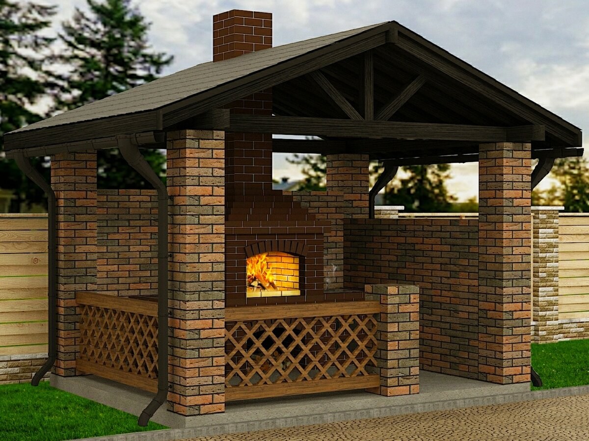 Кирпичный мангал под навесом