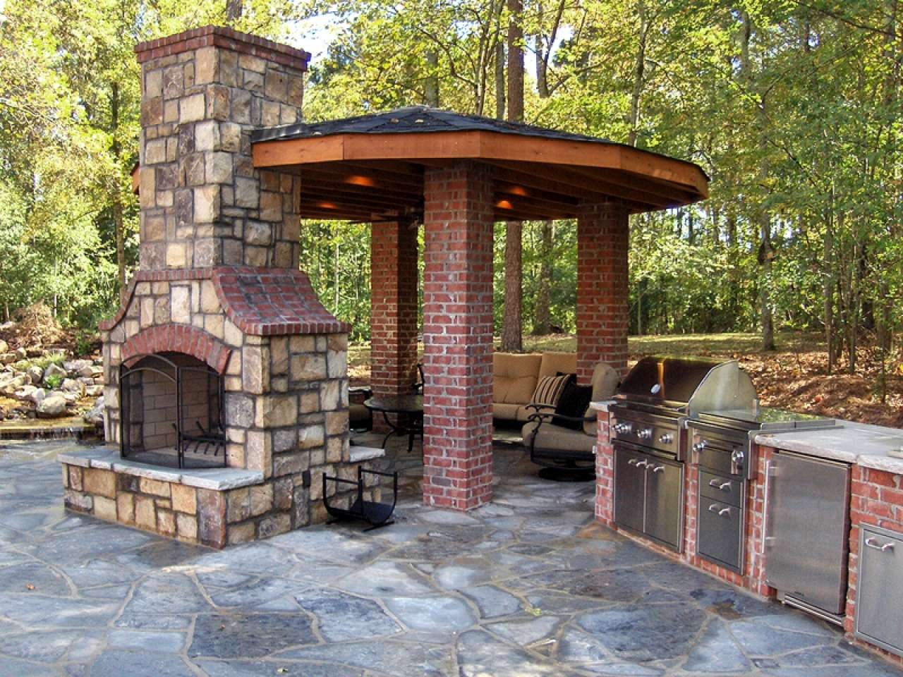 Зона барбекю из кирпича