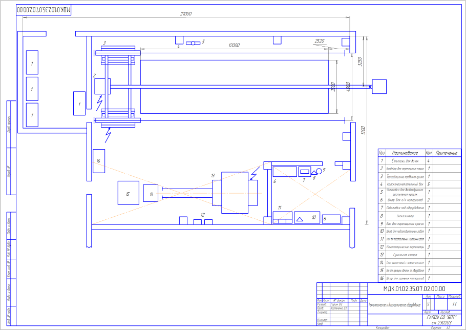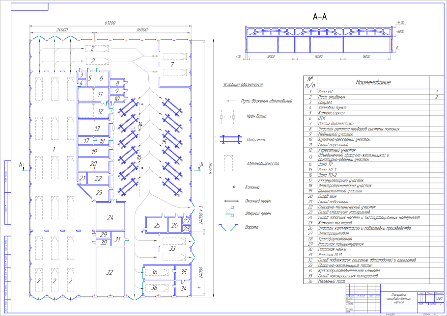 Чертеж участка по ремонту топливной аппаратуры дизельных двигателей
