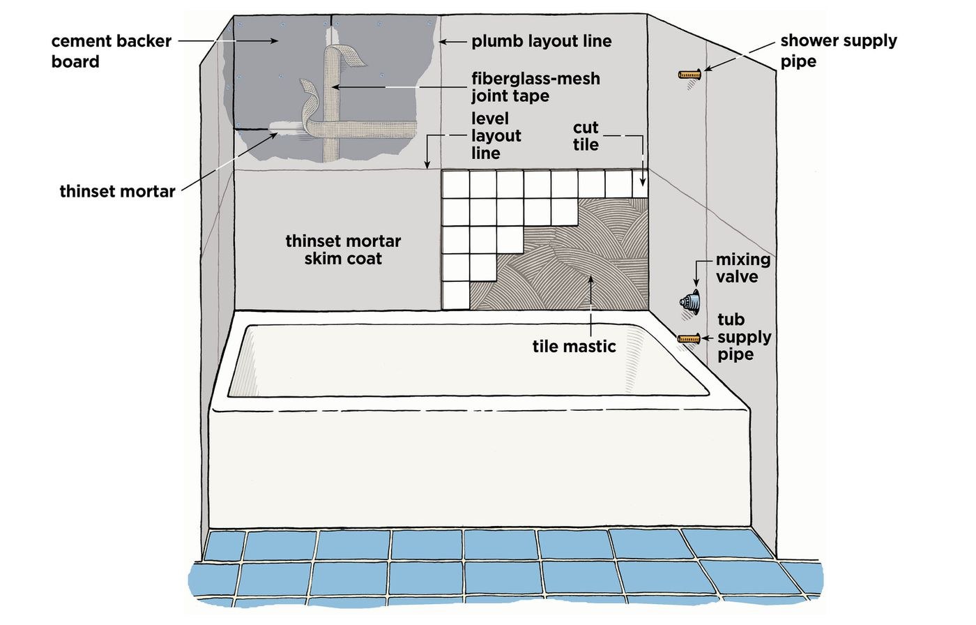 Монтаж плитки в санузлах схема