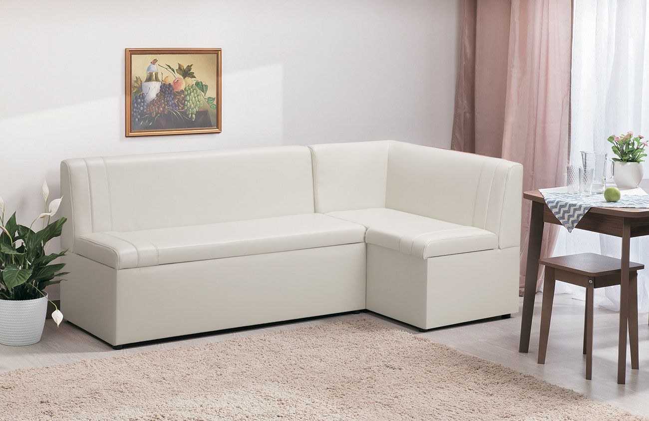 Диван кухонный с ящиком уют, 1400х650х810 мм, белый, искусственная кожа