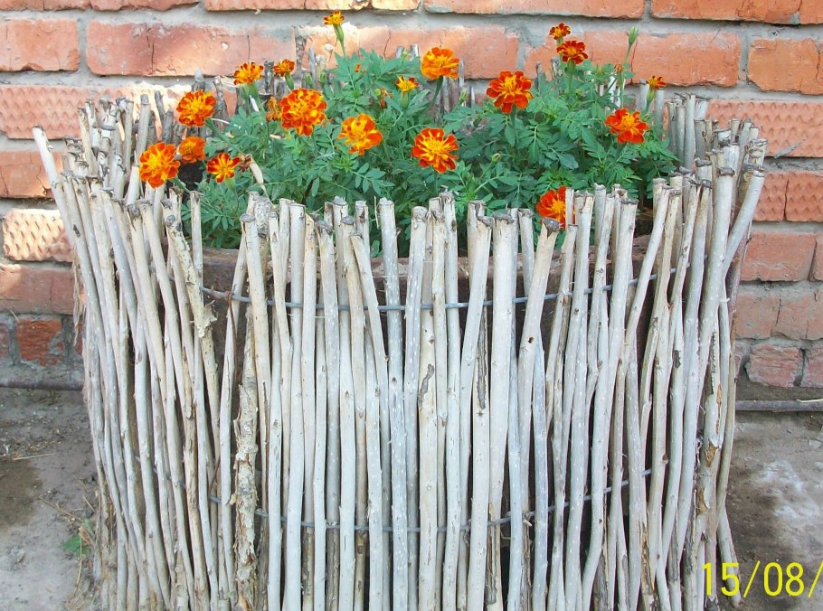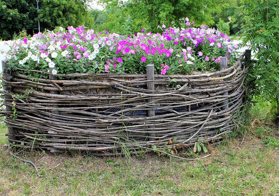 Клумба плетеная из веток