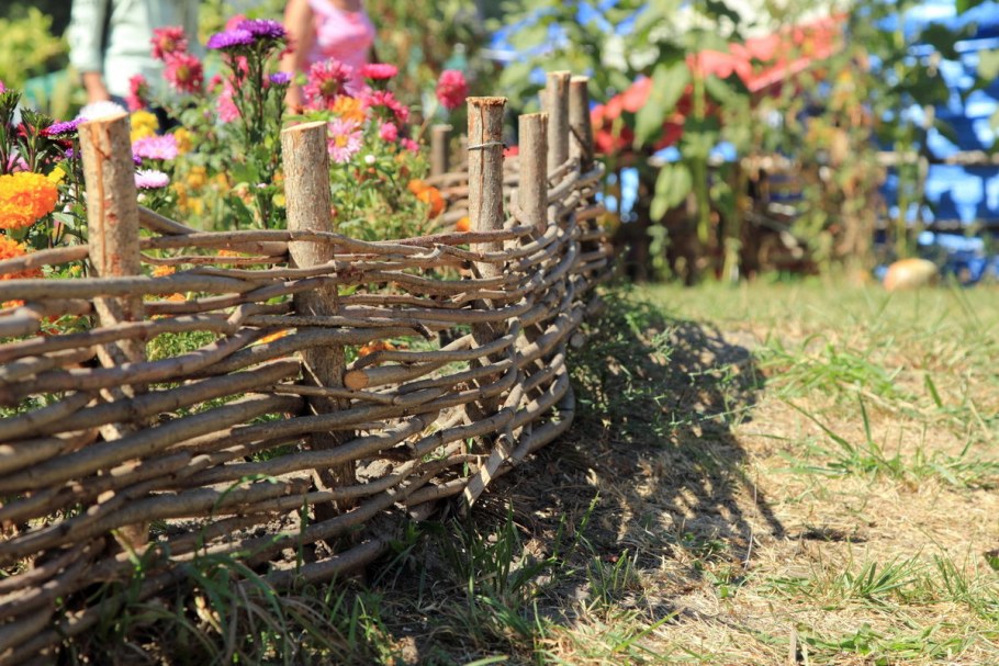 Заборчик из веток для клумбы