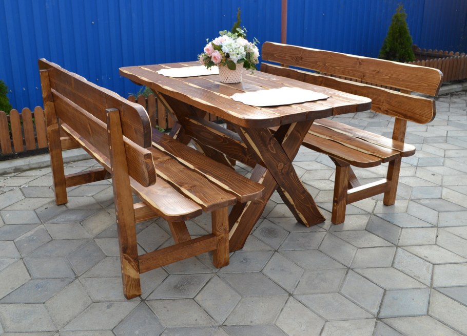 Стол с лавками из дерева