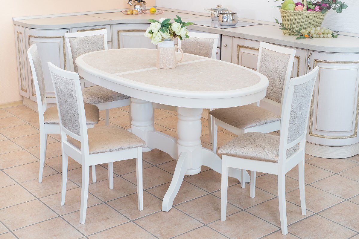 Стол раздвижной 1200(1550)*800 полуовал, №5-НК(А), белый, Майя мебель