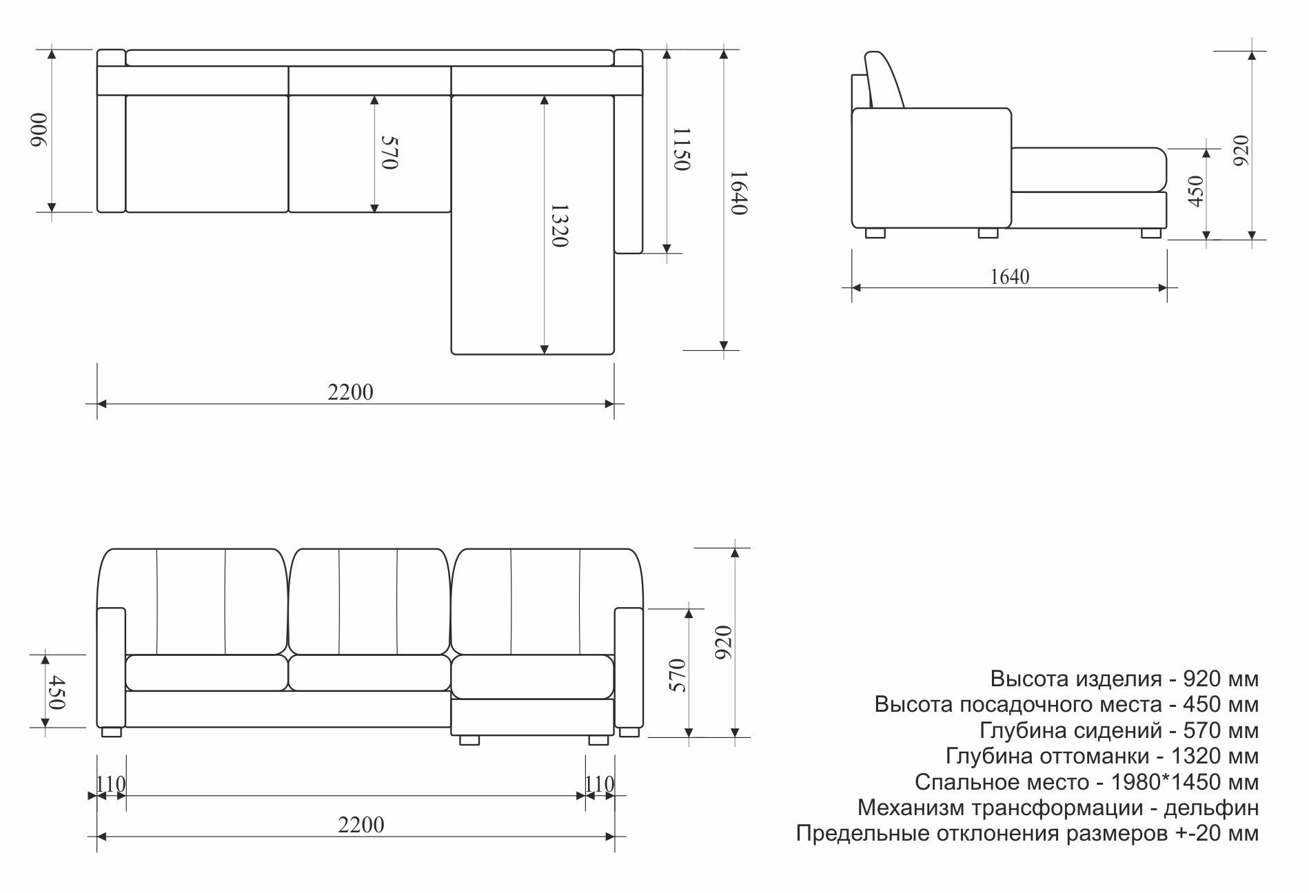 Угловой диван типоразмеры