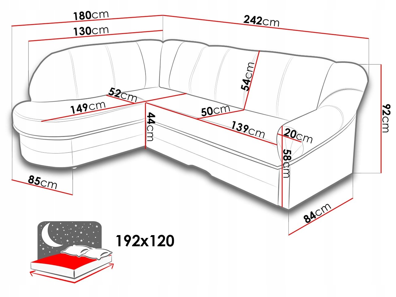 Угловой диван размер спального места 200х180