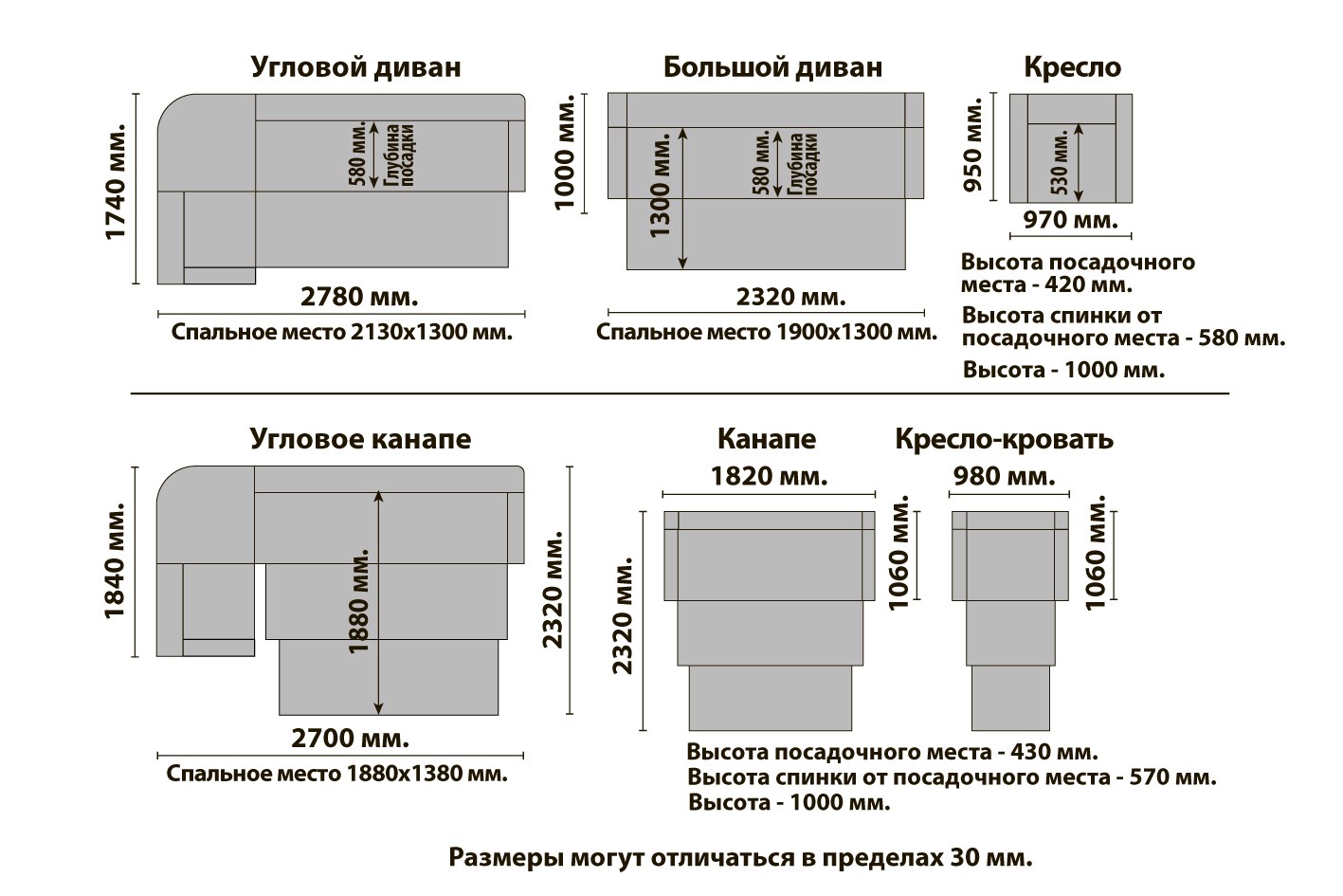 Стандартные габариты дивана