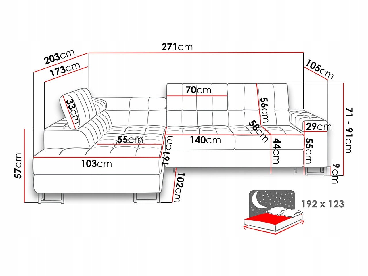 Диван угловой раздвижной Размеры