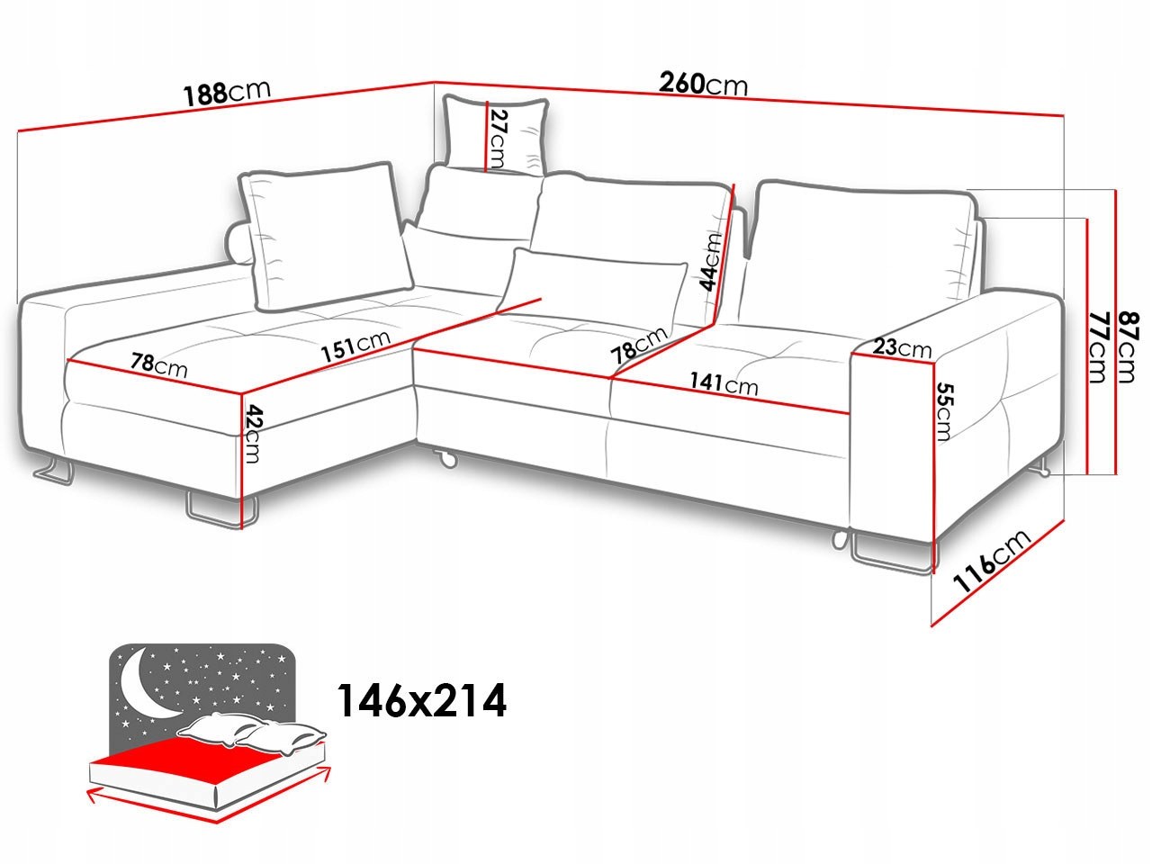 Угловой диван габариты 2600х1600