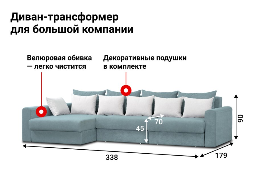 Угловой диван 260см габариты