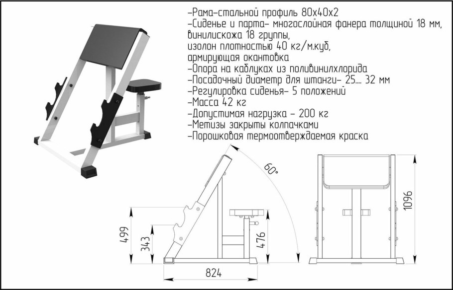 Наклонная скамья для жима чертежи