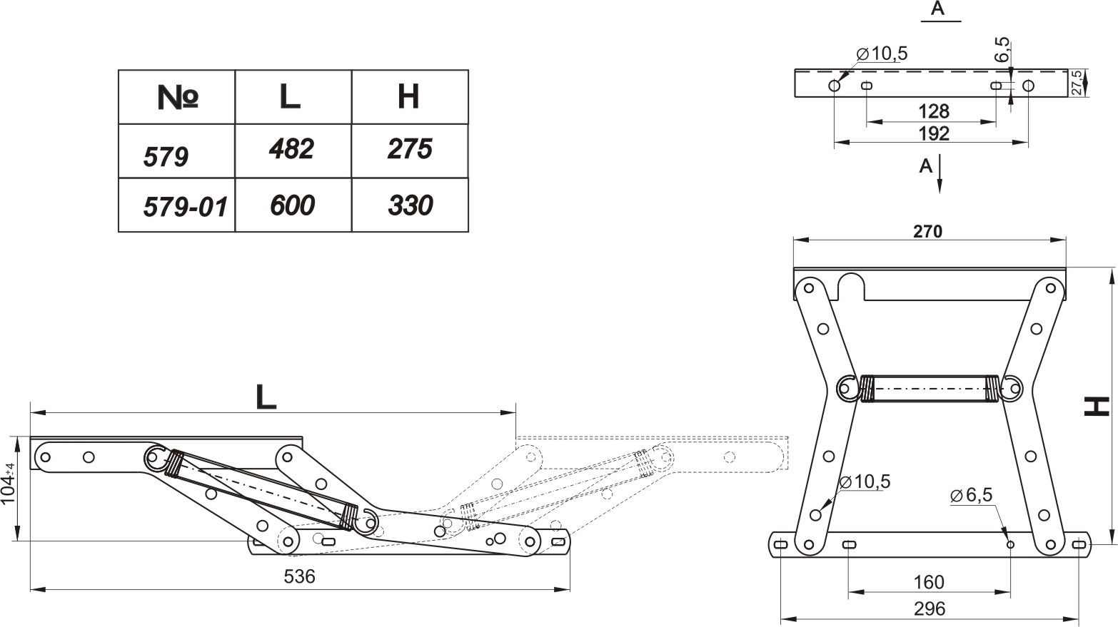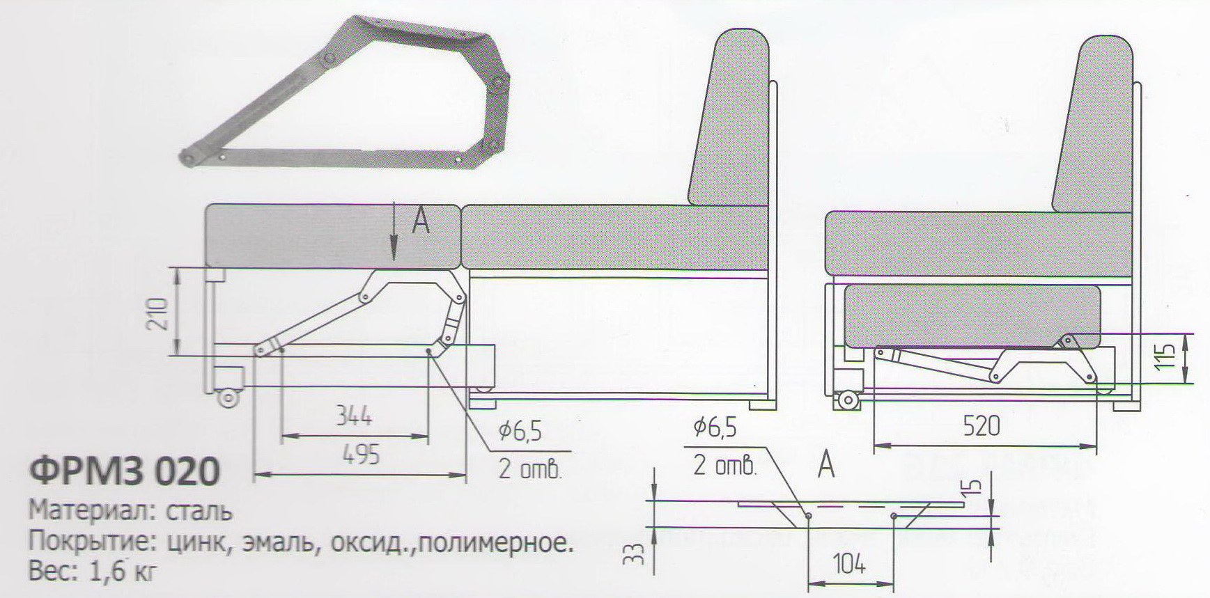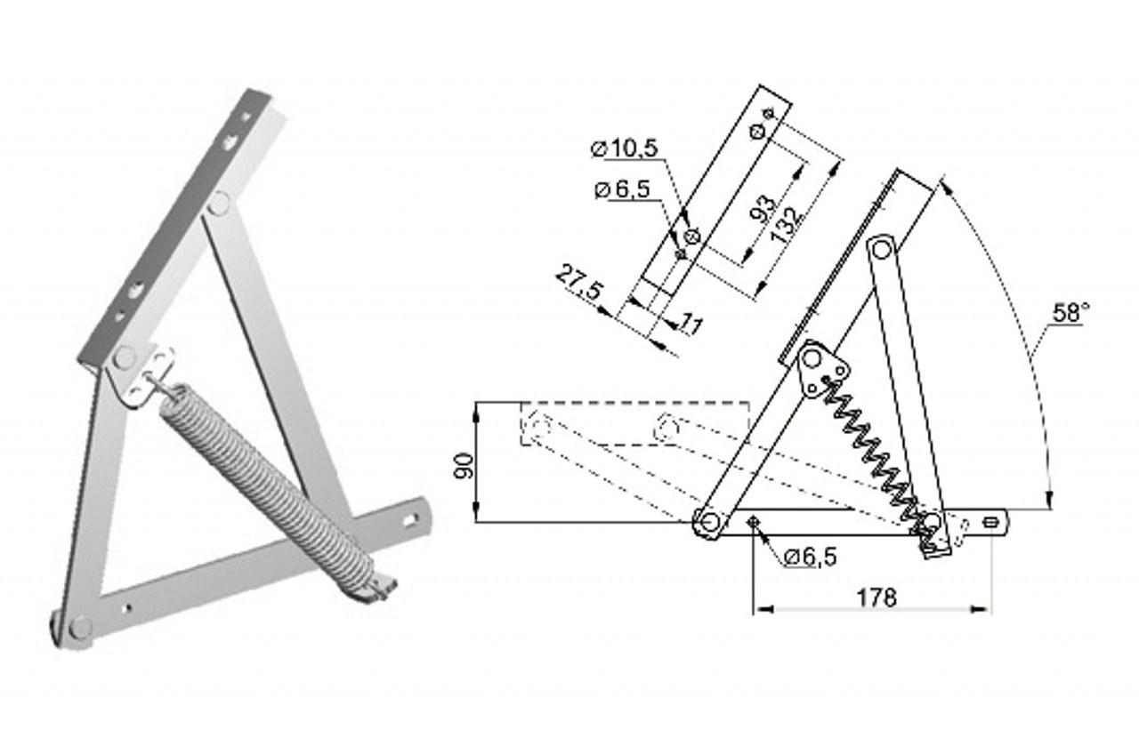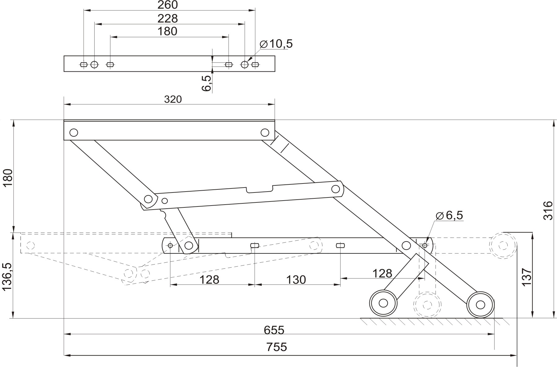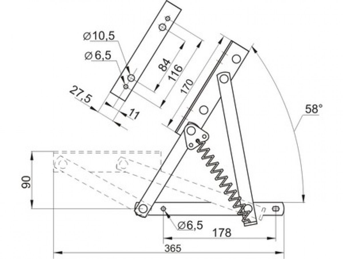 Механизм подъема кровати МПК 500, газлифты 1200n