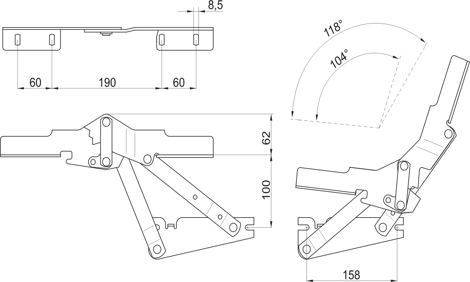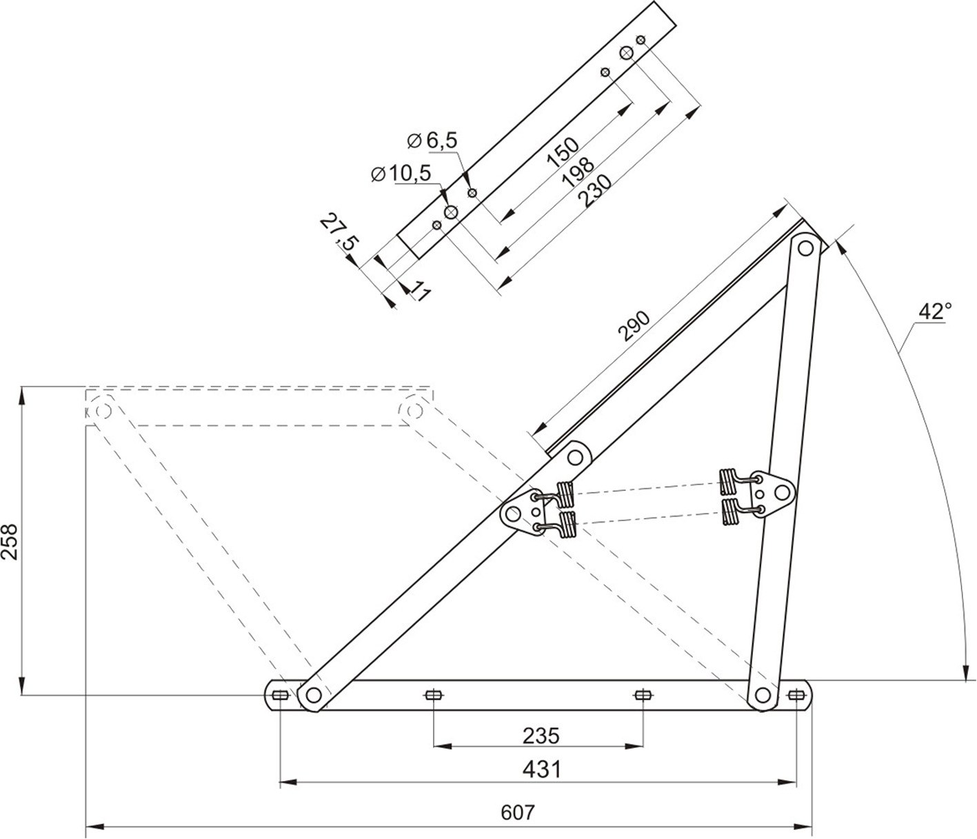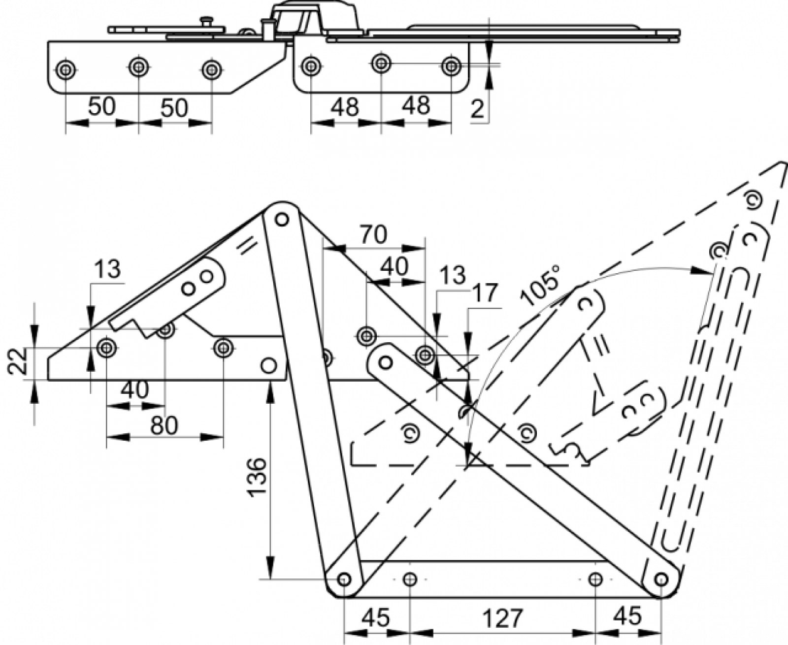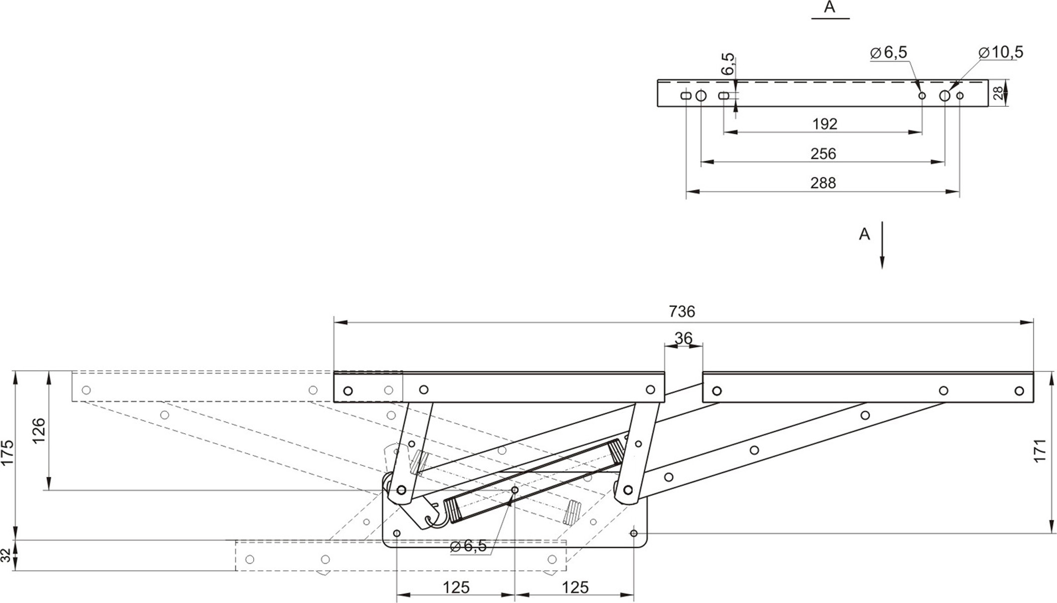 Механизм подъема кровати МПК 500, газлифты 1200n