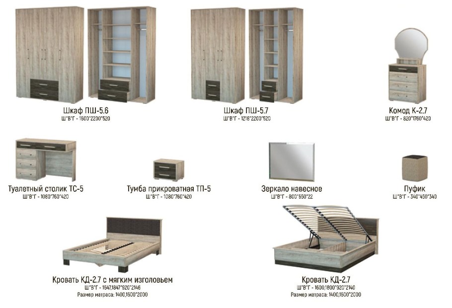 Спальня Сабрина-2 шкаф ПШ-9 (зер. В комп) (венге / дуб молочный)