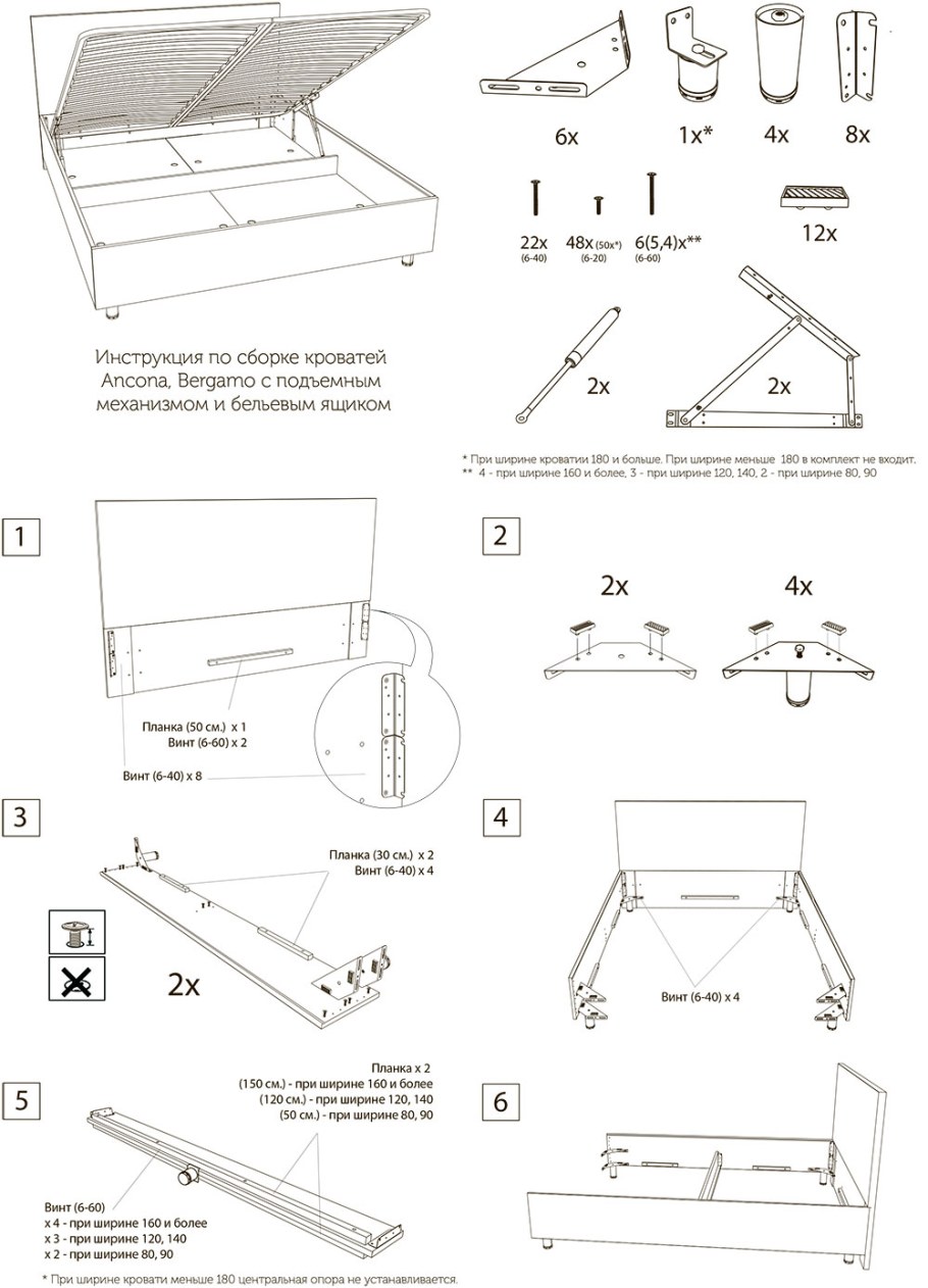 Схема сборки кровати с подъемным механизмом 1600х2000 Парма Нео