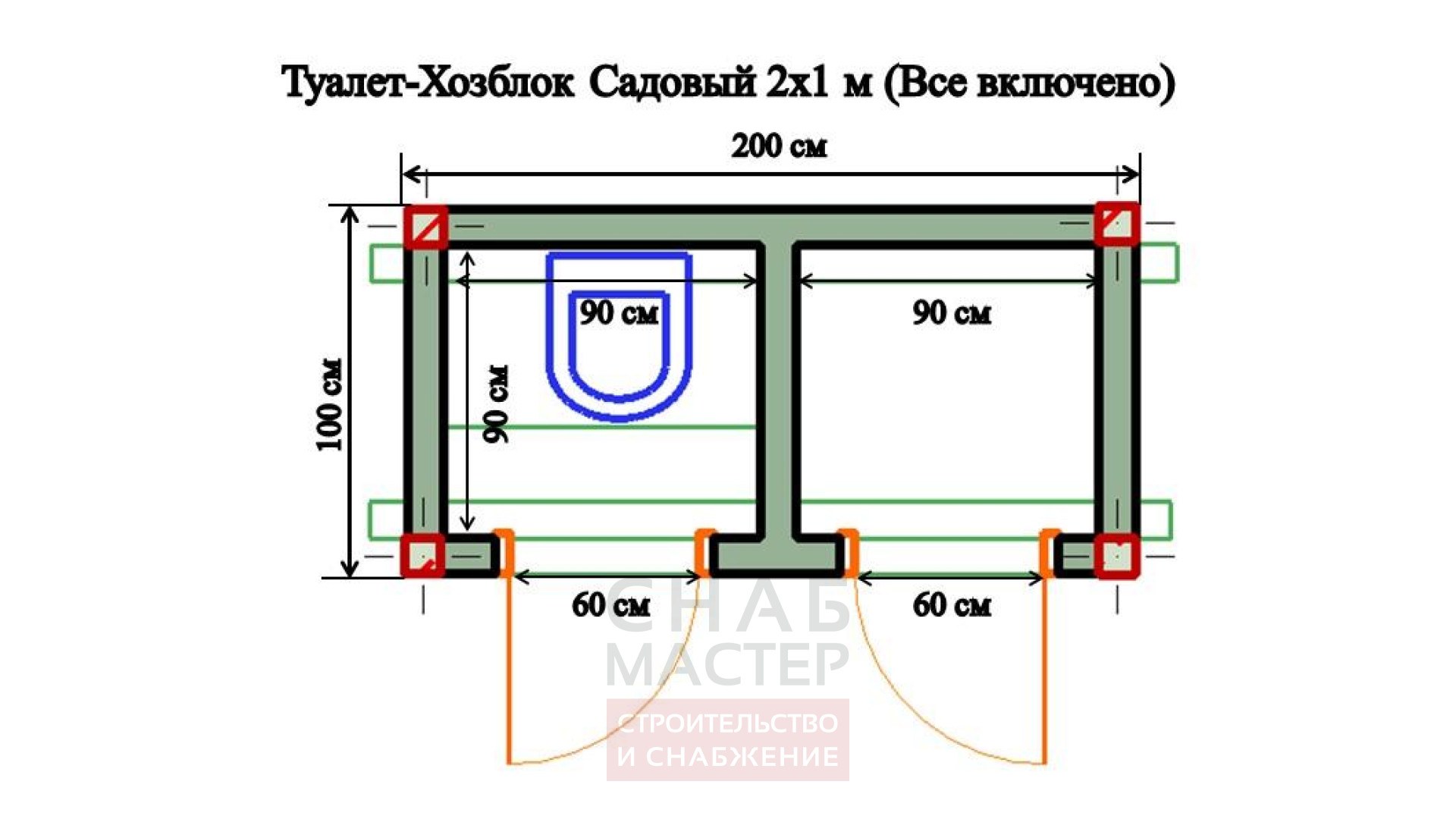 Туалет - душ - хозблок (размер 2-1,2-1,2 м)