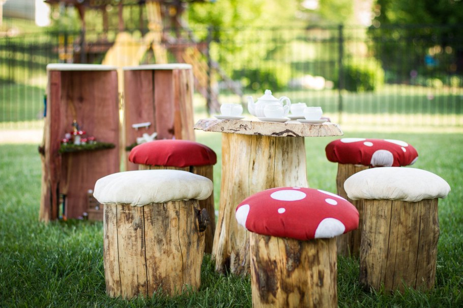 Столик в саду на пеньках