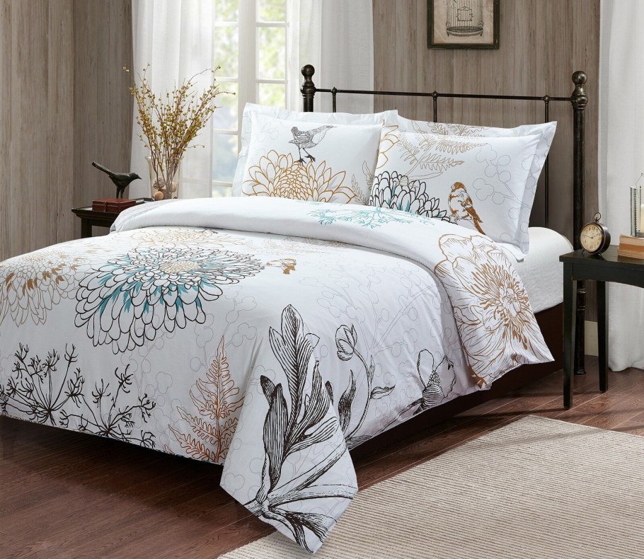 Постельный комплект - лилии перкаль на бирюзовом