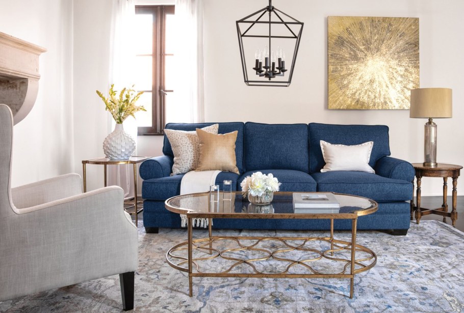 Гостиная с синим диваном