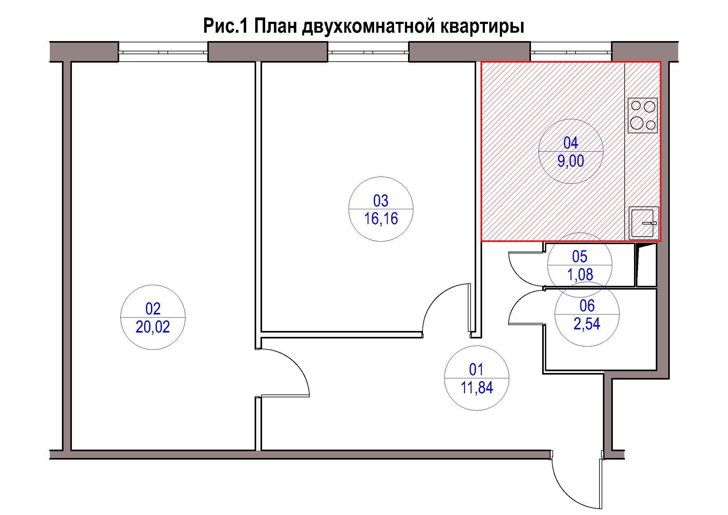 Чертеж двухкомнатной квартиры